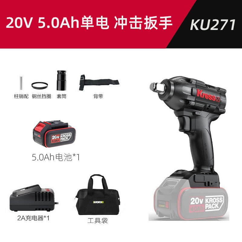 • KU271 전동 렌치 [5.0Ah 배터리 2개 및 충전기 1개 + 천 가방]