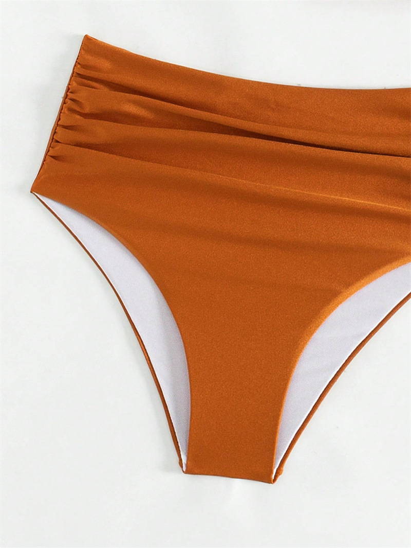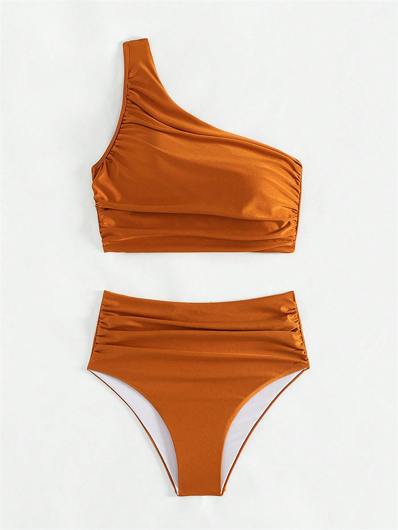 2024 새로운 유럽과 미국의 솔리드 컬러 플리트 수영복 여성용 섹시한 어깨 비키니 아마존 비키니