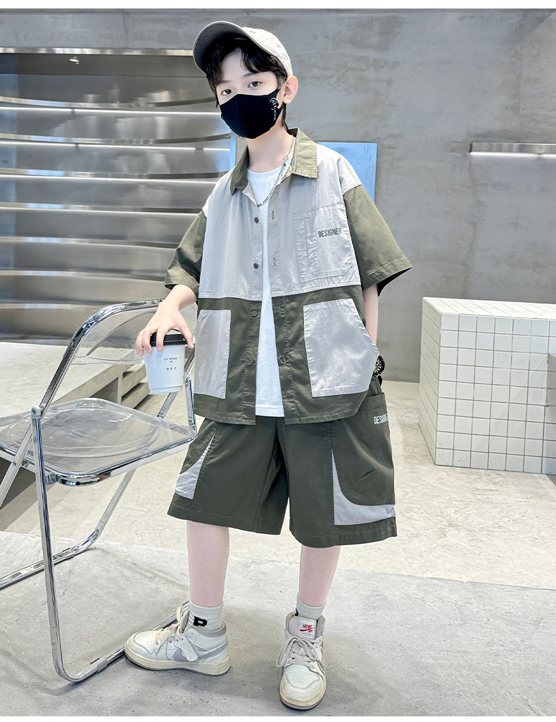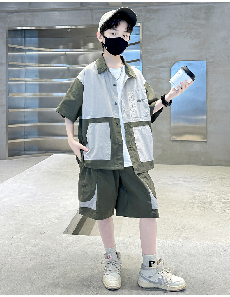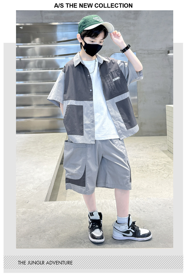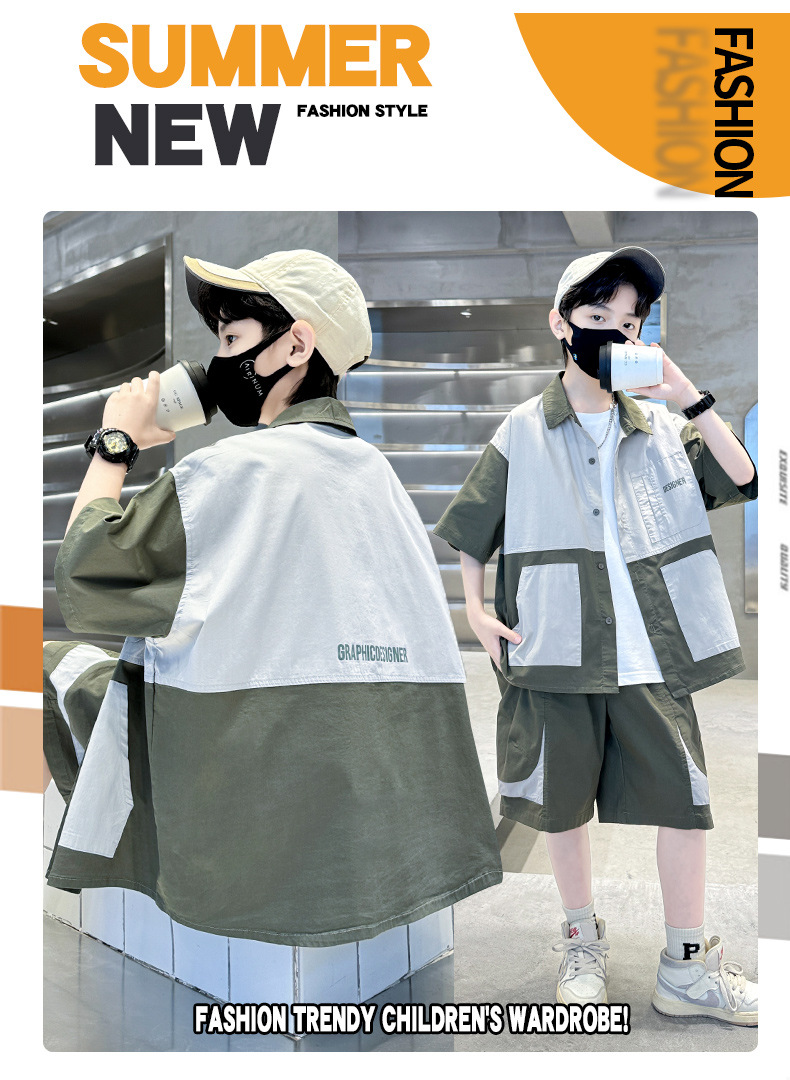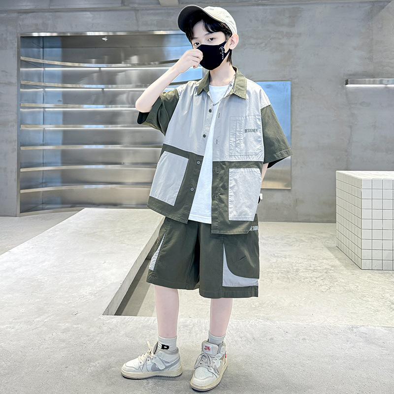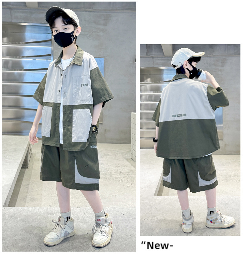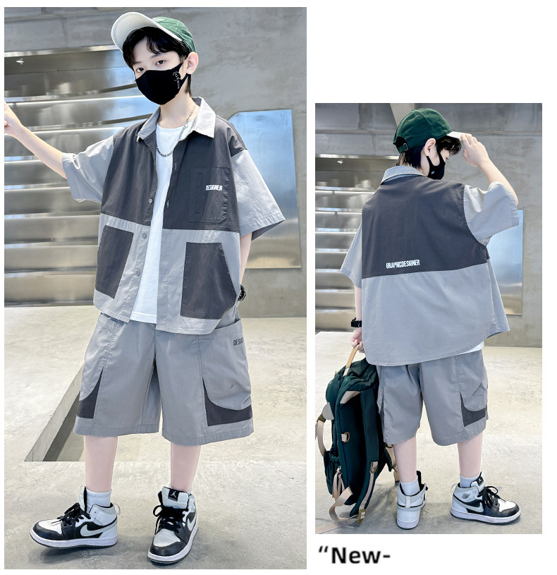 남자들의 여름 셔츠 반팔 세트 2024 새로운 중대형 어린이 여름 여름 소년 바지 투피스 세트