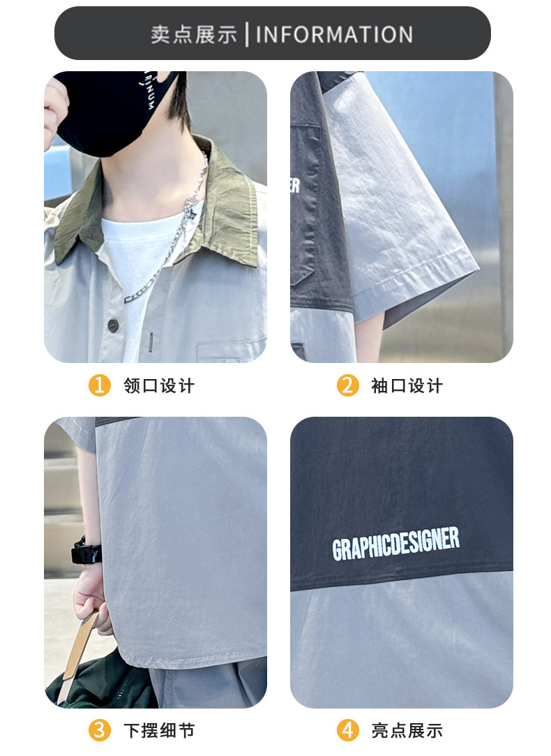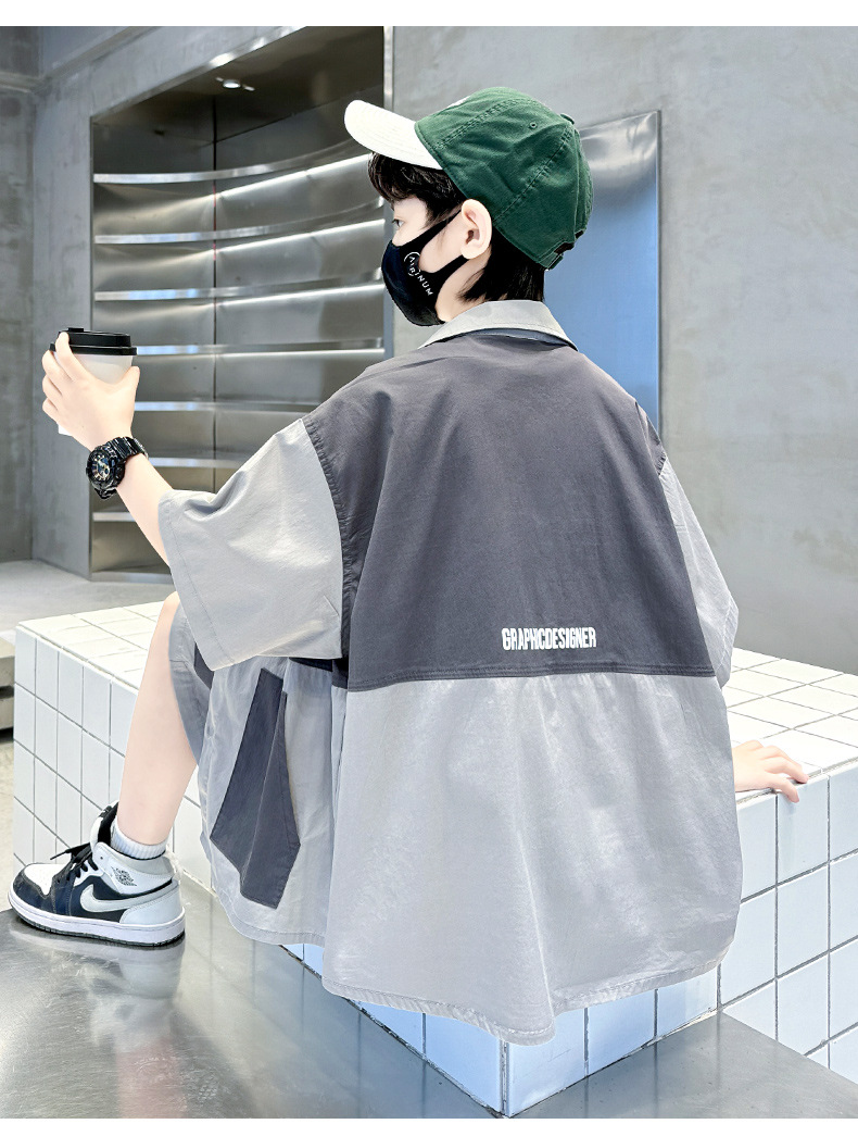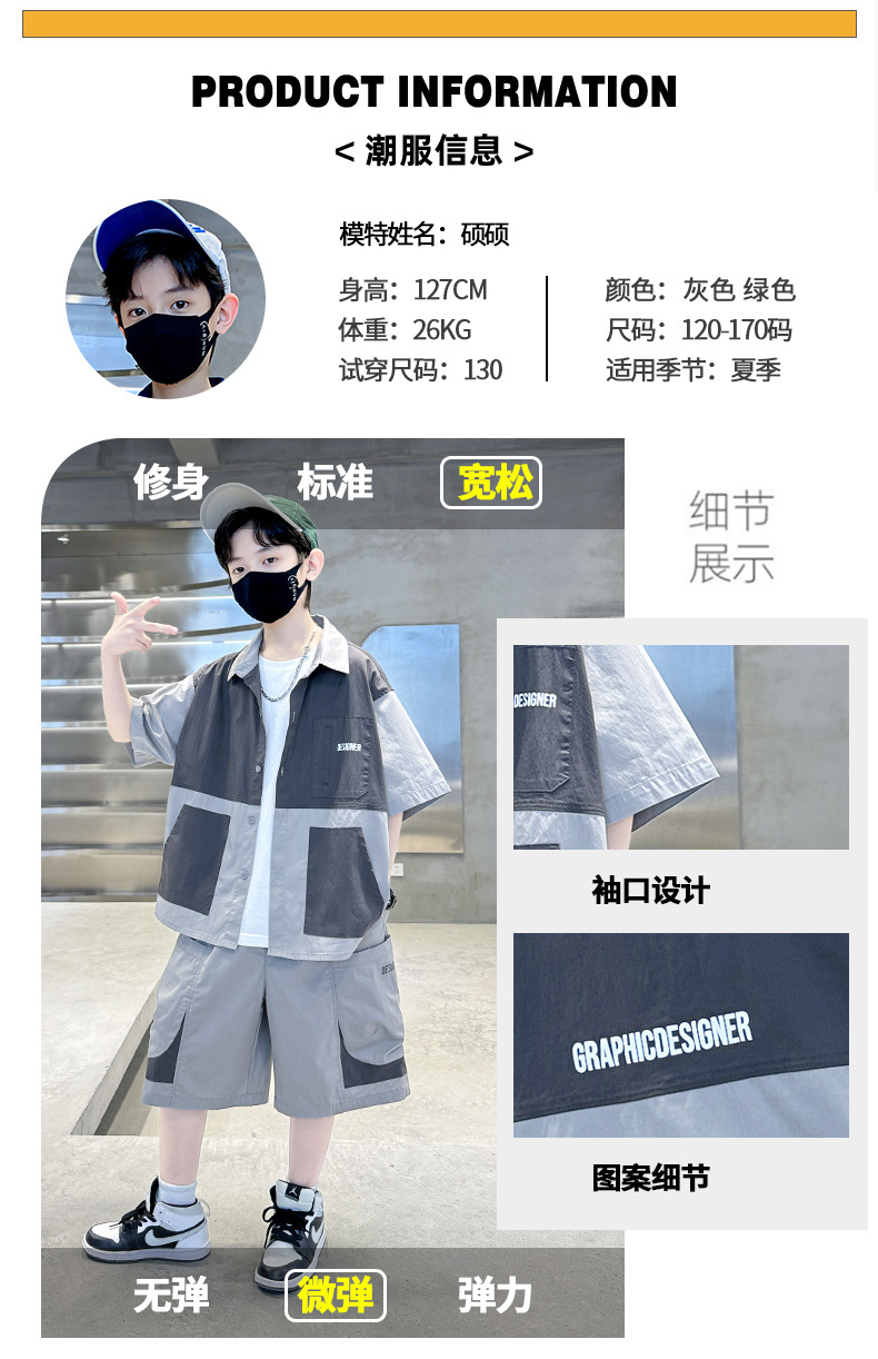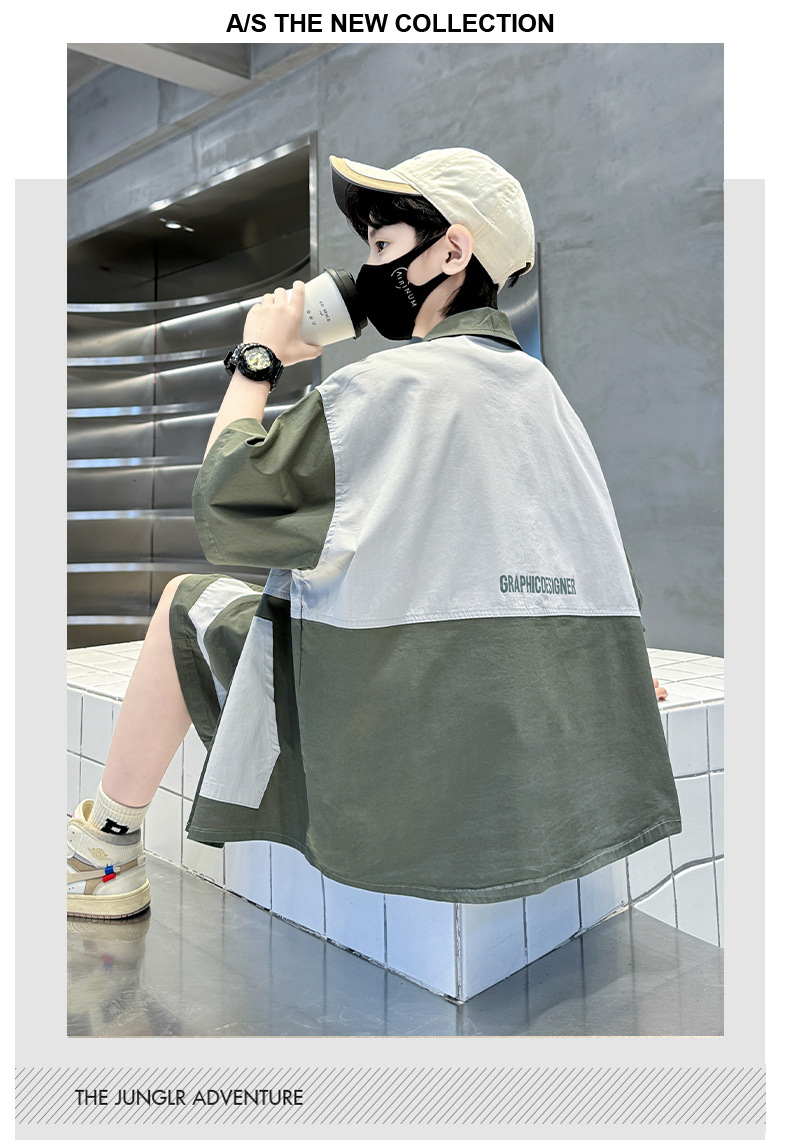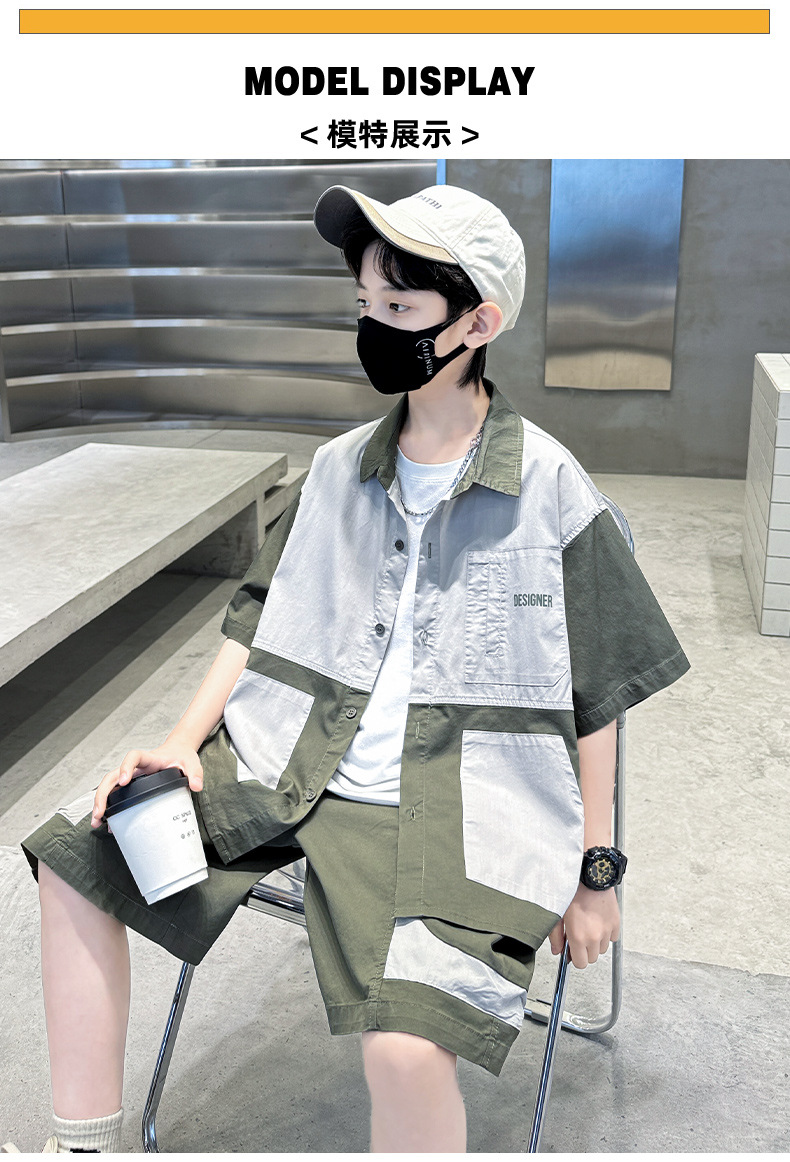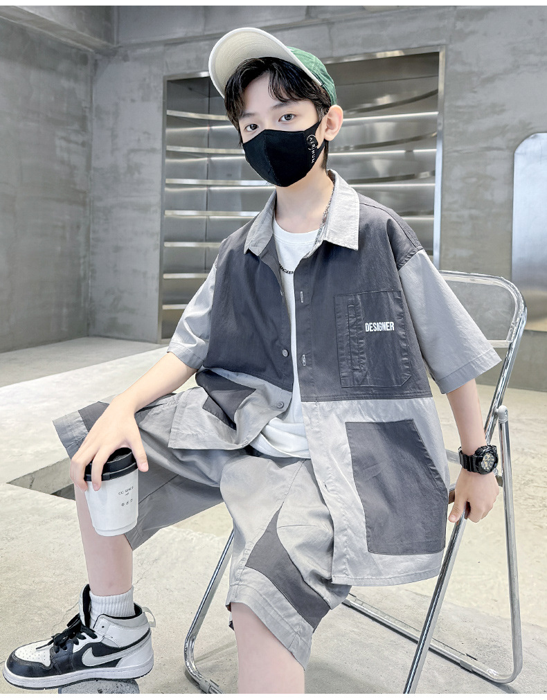 남자들의 여름 셔츠 반팔 세트 2024 새로운 중대형 어린이 여름 여름 소년 바지 투피스 세트