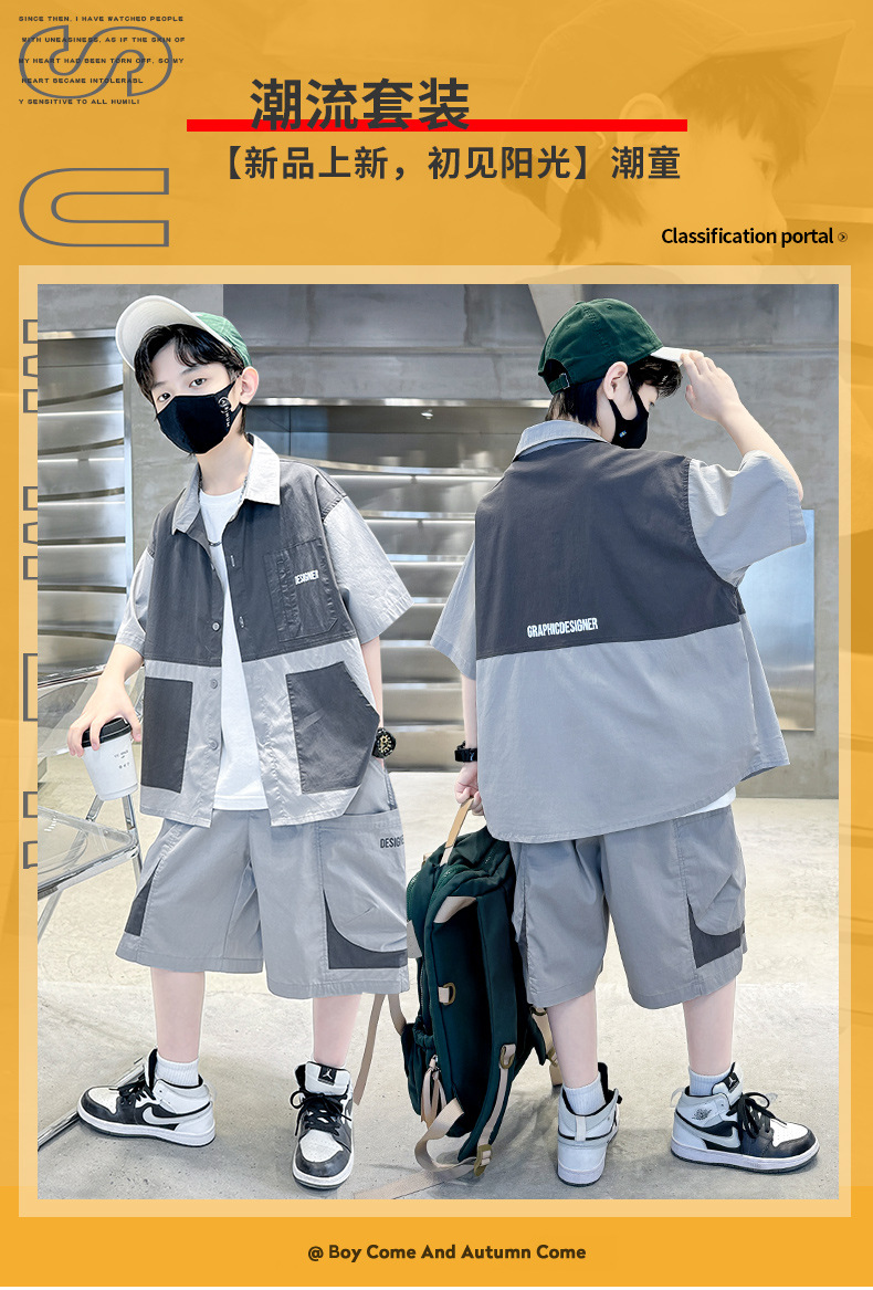 남자들의 여름 셔츠 반팔 세트 2024 새로운 중대형 어린이 여름 여름 소년 바지 투피스 세트스토어 가기
