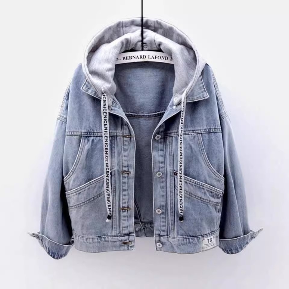 재고 데님 쇼트코트 여자 쇼트봄 · 가을 한국식 신형 긴소매 슬림핏 후드자켓 올매치 학생상스토어 가기