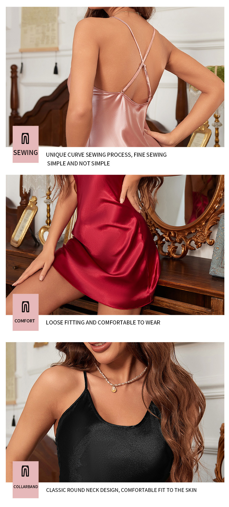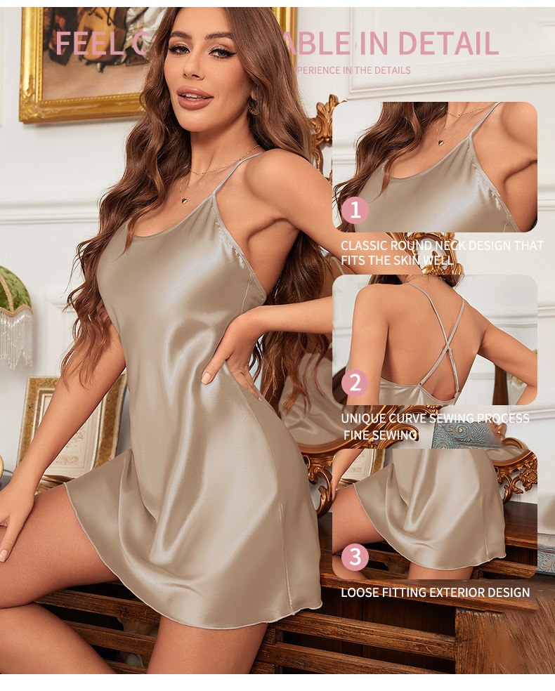 유럽과 미국의 새로운 섹시한 아이스 실크 잠옷 여성용 슬립 드레스 홈웨어 여름 심플 캐주얼 슬립 드레스 도매