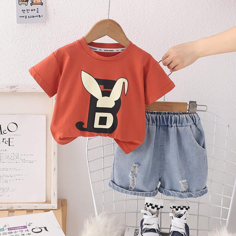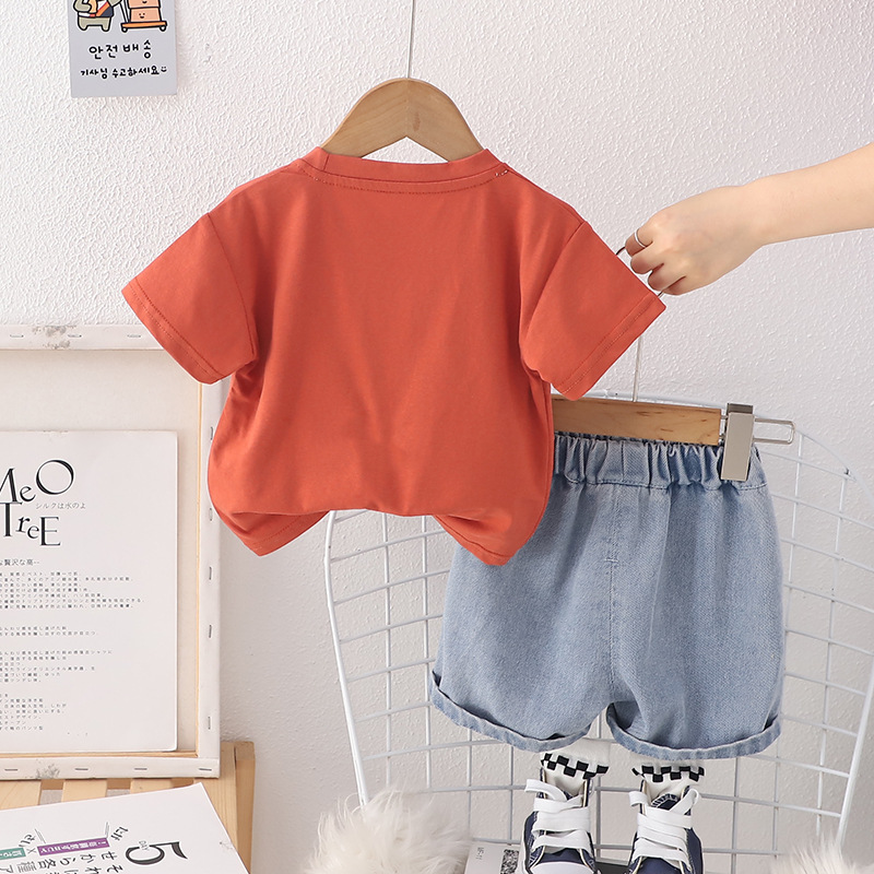 2024 여름 뉴 보이즈 여름 세트 어린이 아기 패션 반팔 크루 넥 티셔츠 투피스 반바지