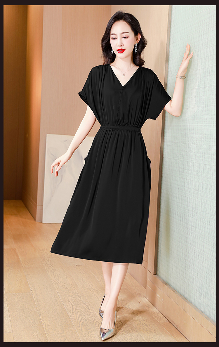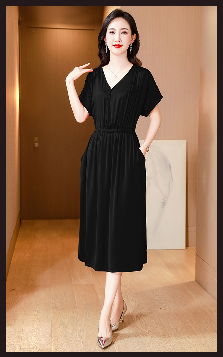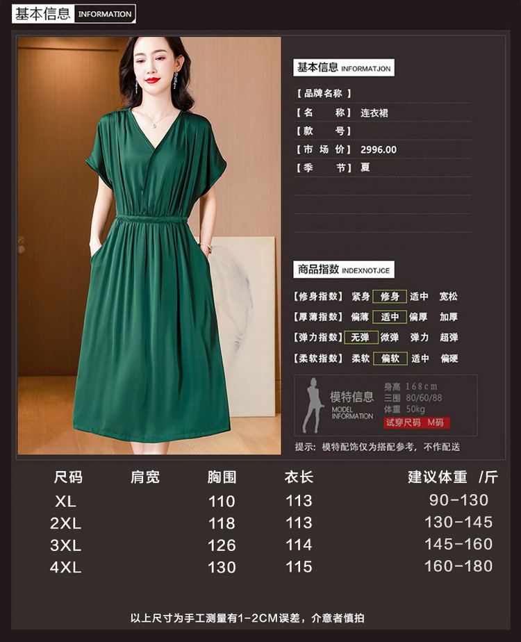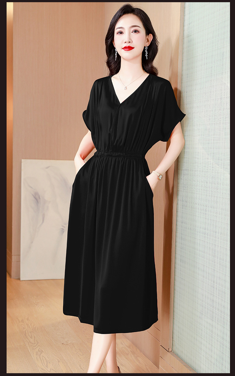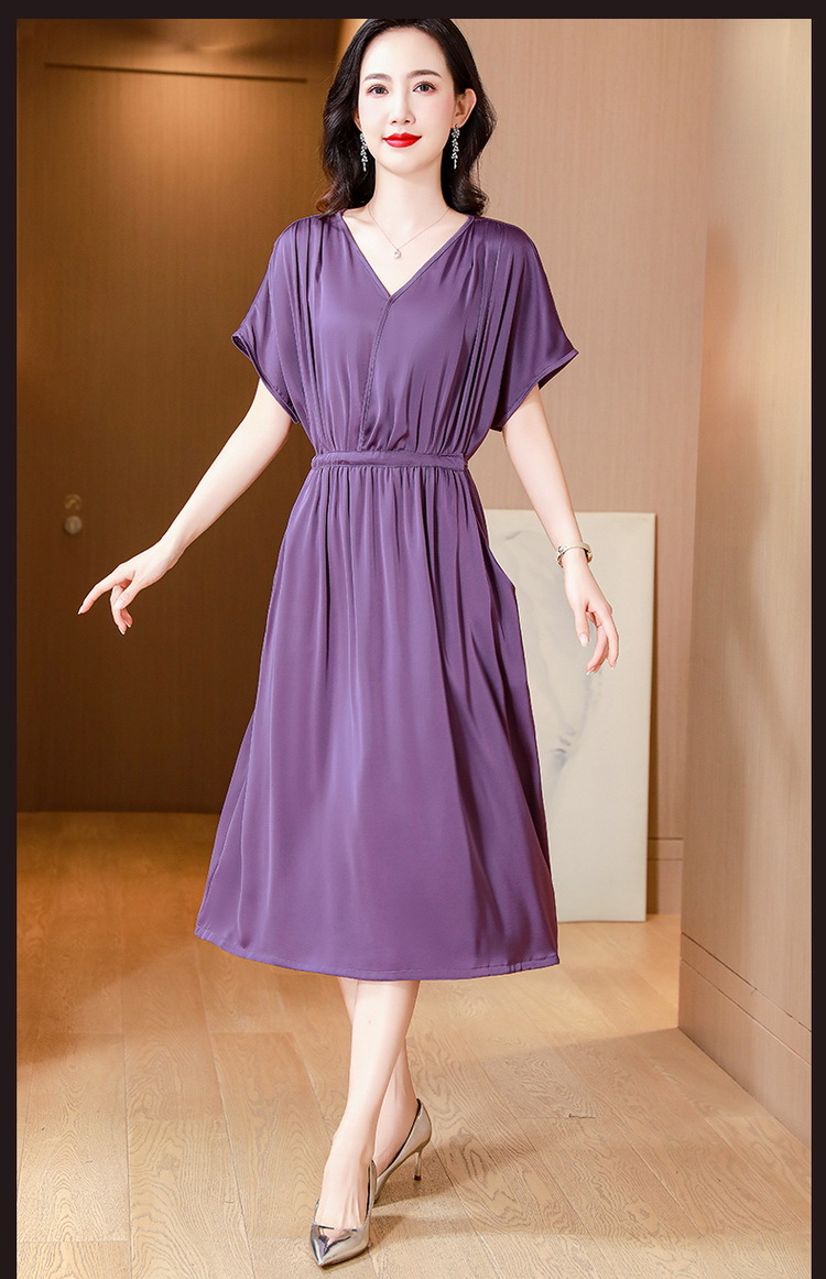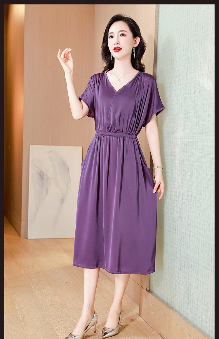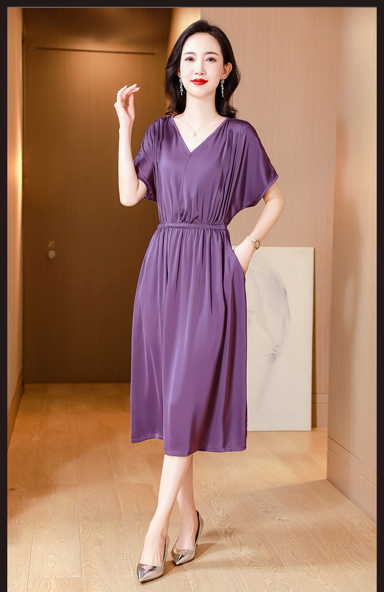 중년 어머니 원피스 여성의 2024 년 새 여름 V-목 배꼽이 허리 슬리밍 박리 실크 롱 스커트스토어 가기