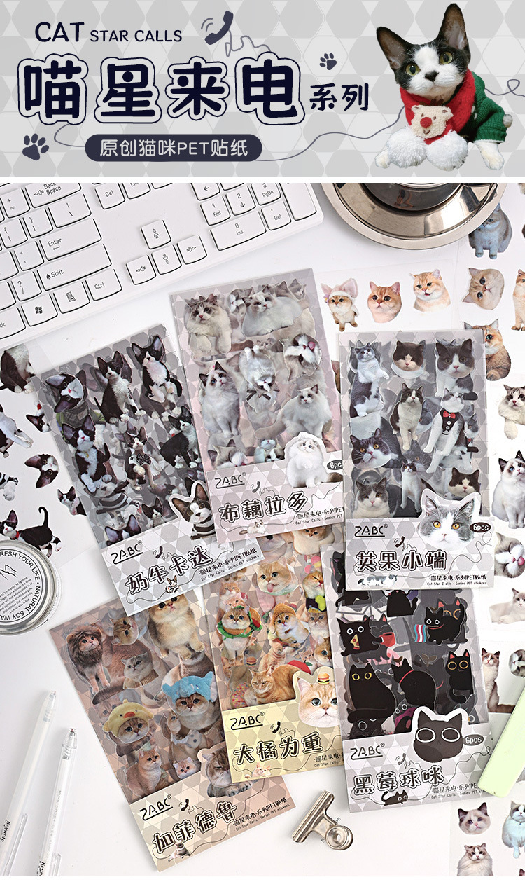 야옹 별 전화 방수 애완 동물 손 계정 스티커 귀여운 diy 손 계정 소재 종이 스티커 종이 스티커 용 Yuezhen 국경 특별