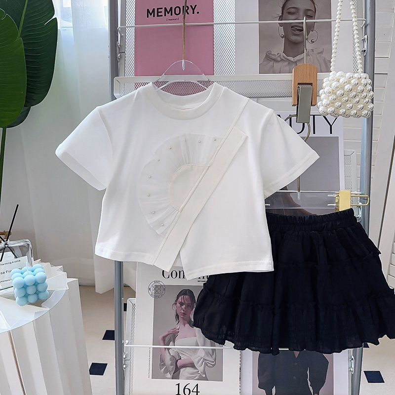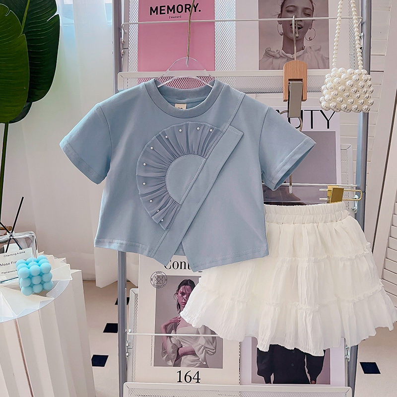 소녀의 케이크 스커트 2024 여름 새로운 스타일 올 매치 주름 Auricularia 레이스 A-라인 스커트스토어 가기