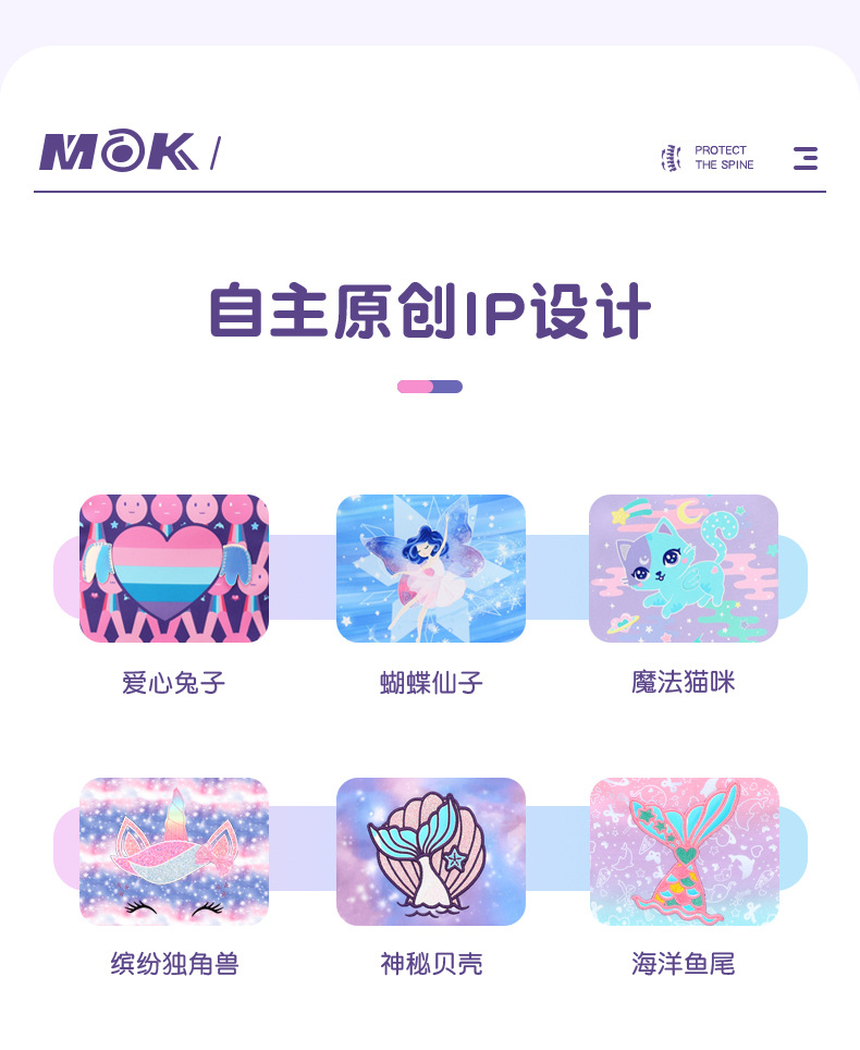 초등학교 학생을위한 Mok New Schoolbag 1-3-6 학년 소녀 경량 배낭 어린이 배낭 연필 케이스 세트스토어 가기