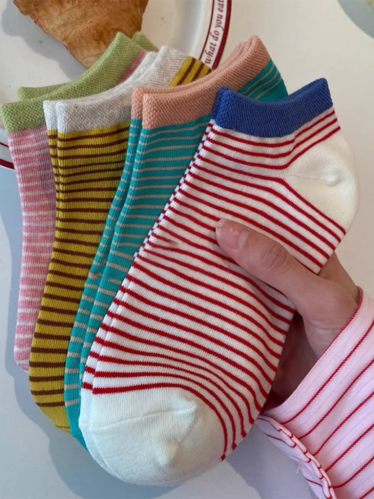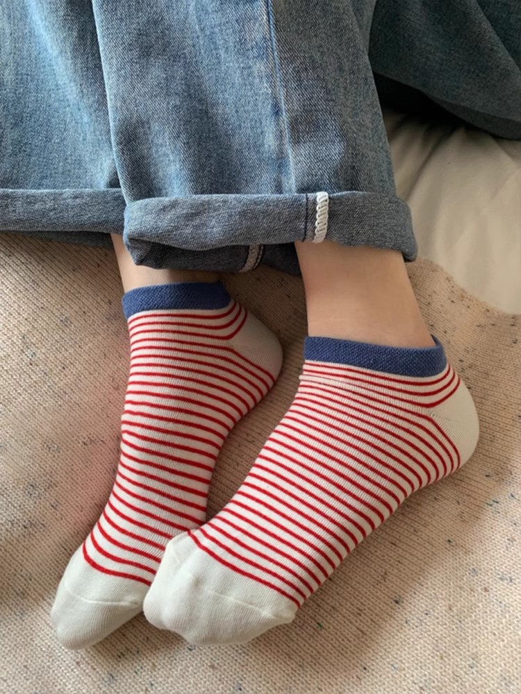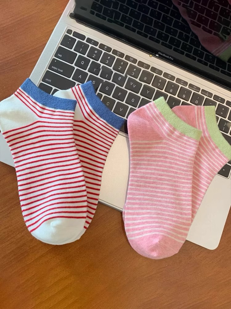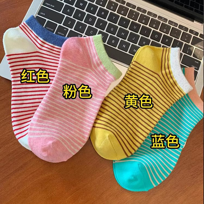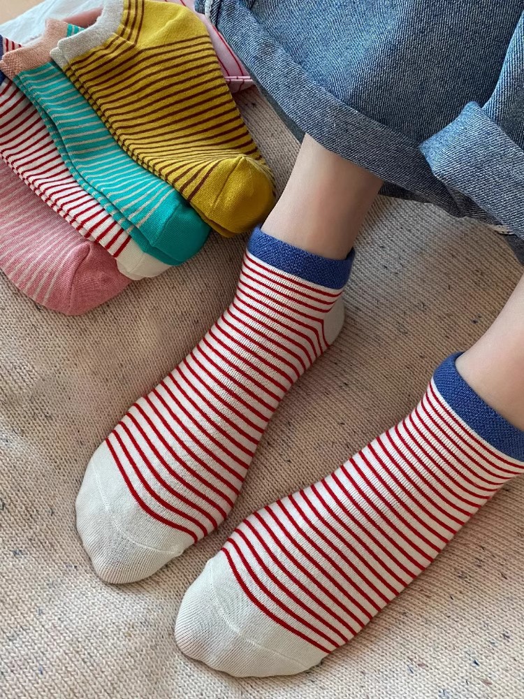 여름 도파민 양말, 배색 세로 스트라이프 숏 양말, 얇고 통기성 좋은 여성용 양말, 편안하고 다용도스토어 가기