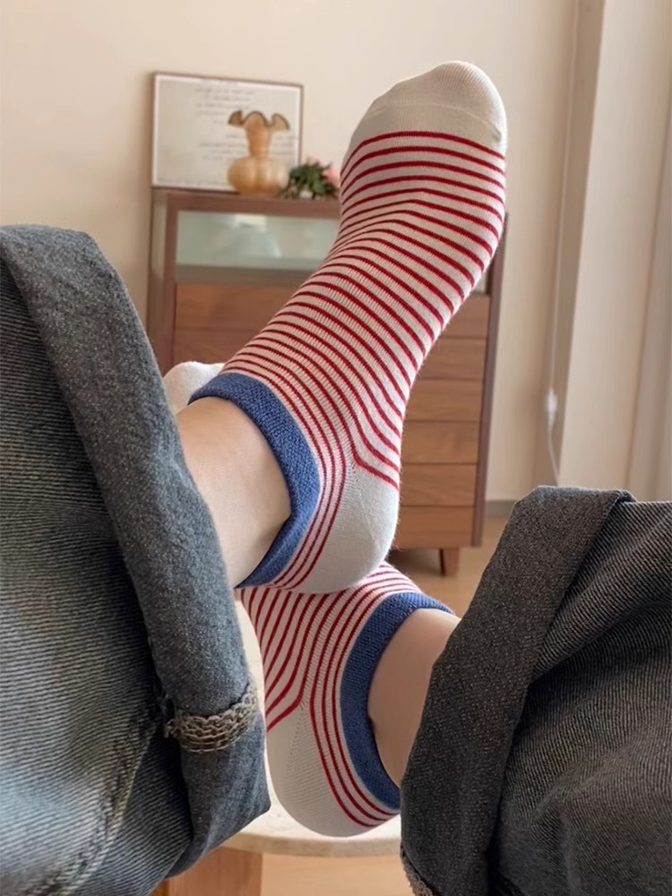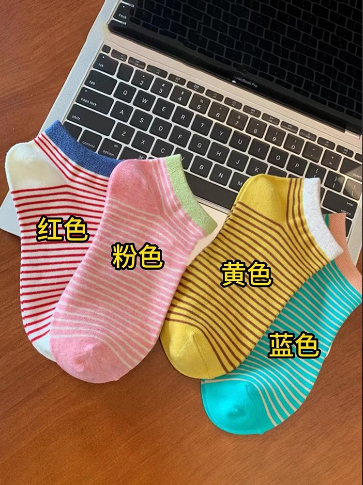 여름 도파민 양말, 배색 세로 스트라이프 숏 양말, 얇고 통기성 좋은 여성용 양말, 편안하고 다용도