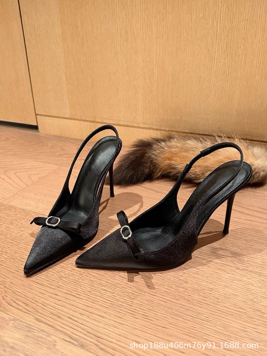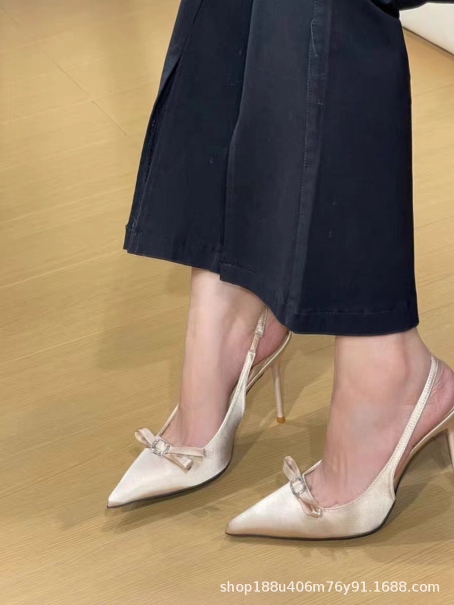 [재고] 샌들 2024 년 여름 새로운 하이힐 스틸레토 뾰족한 모조 다이아몬드 활 프랑스 기질 신발