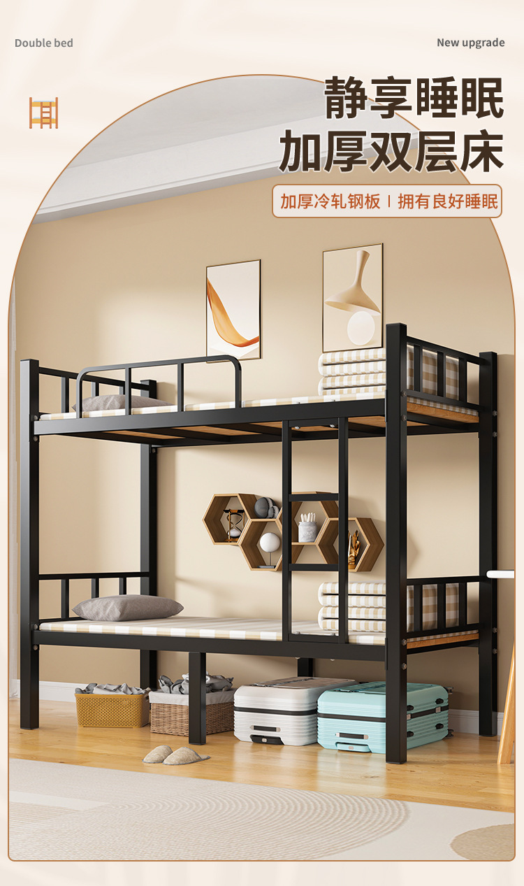 D * 두꺼운 상하 이층 침대 아이언 침대 직원 기숙사 상하 침대 선반 학교 더블 아이언 하이 및 저철 프레임스토어 가기