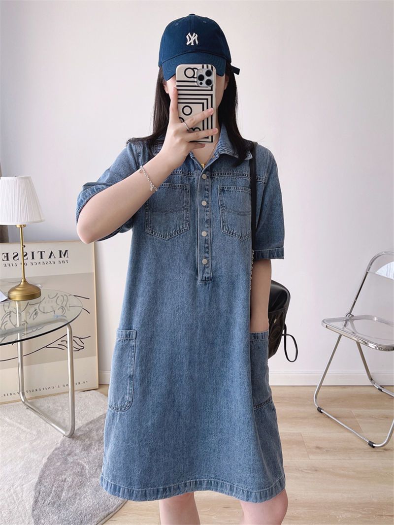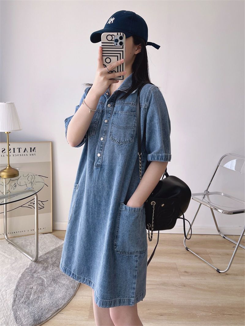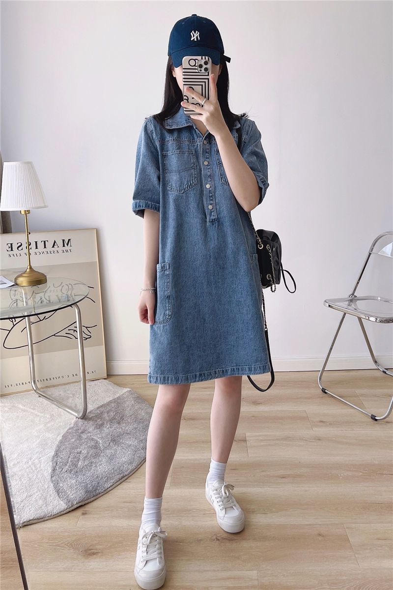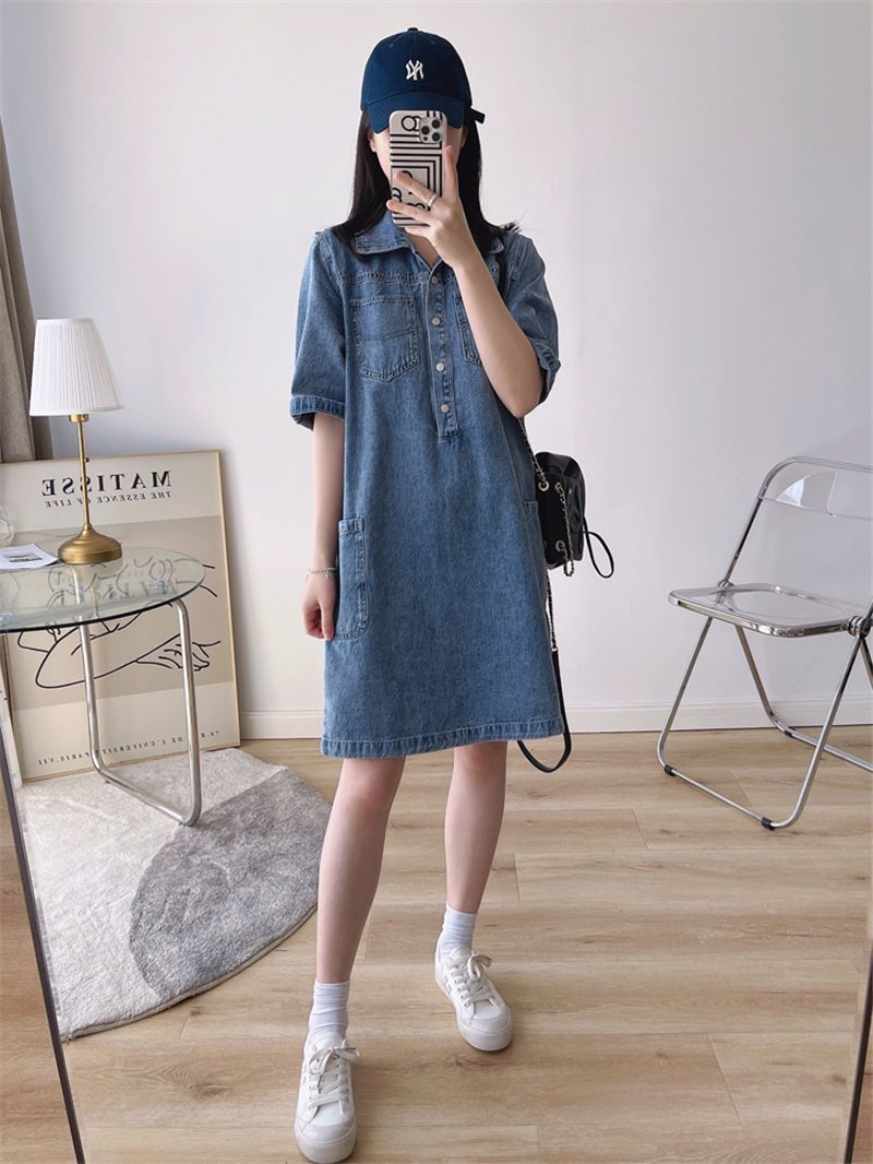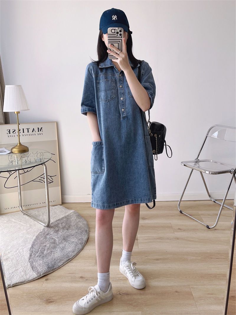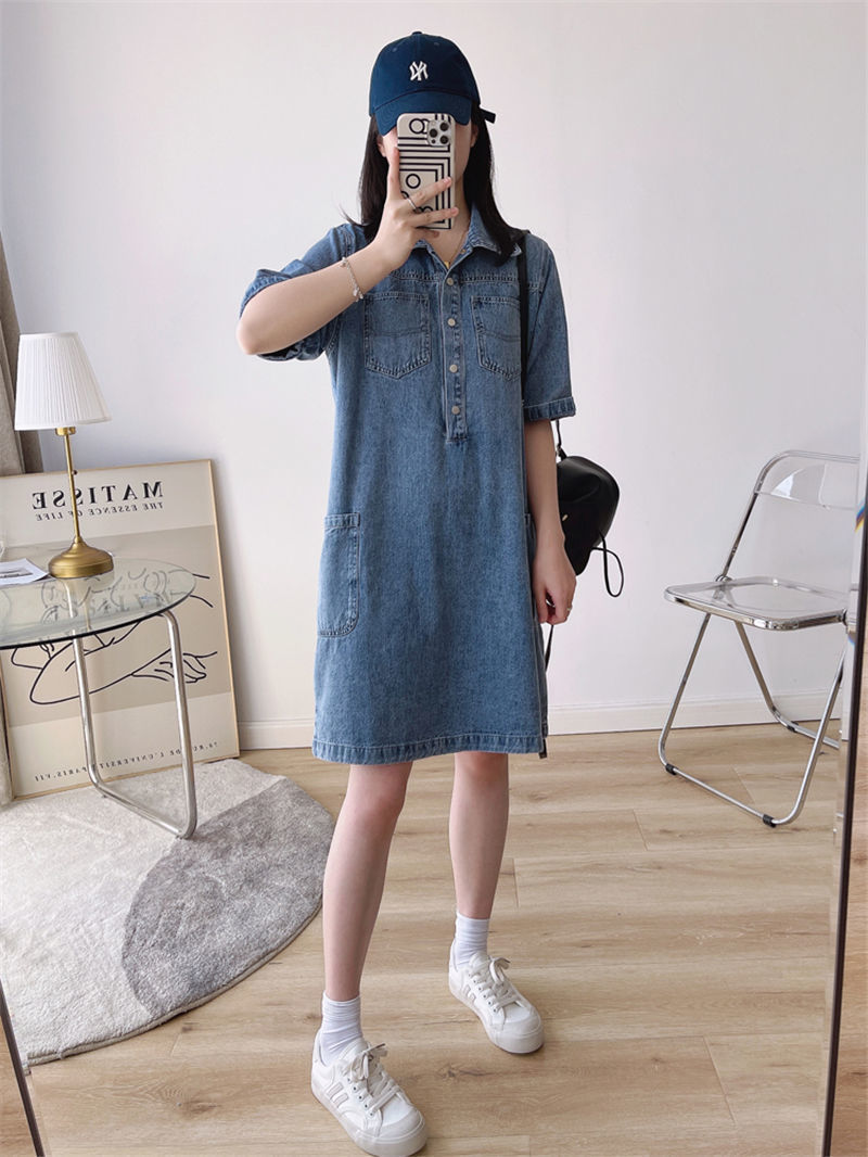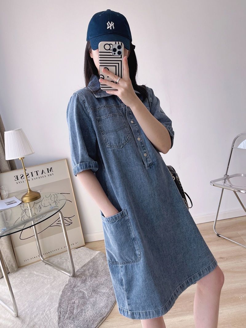 데님 원피스 여자 2024 여름 새로운 한국 팬 느슨한 얇은 슬리밍 우아한 중간 길이 트렌디스토어 가기