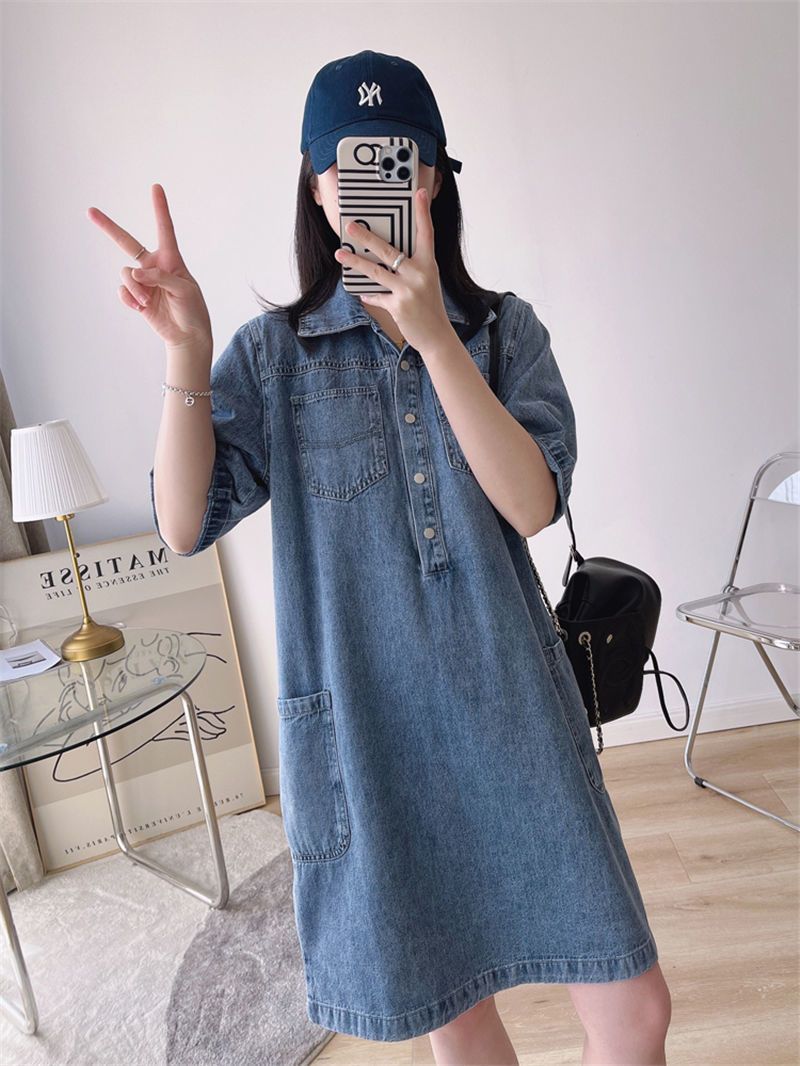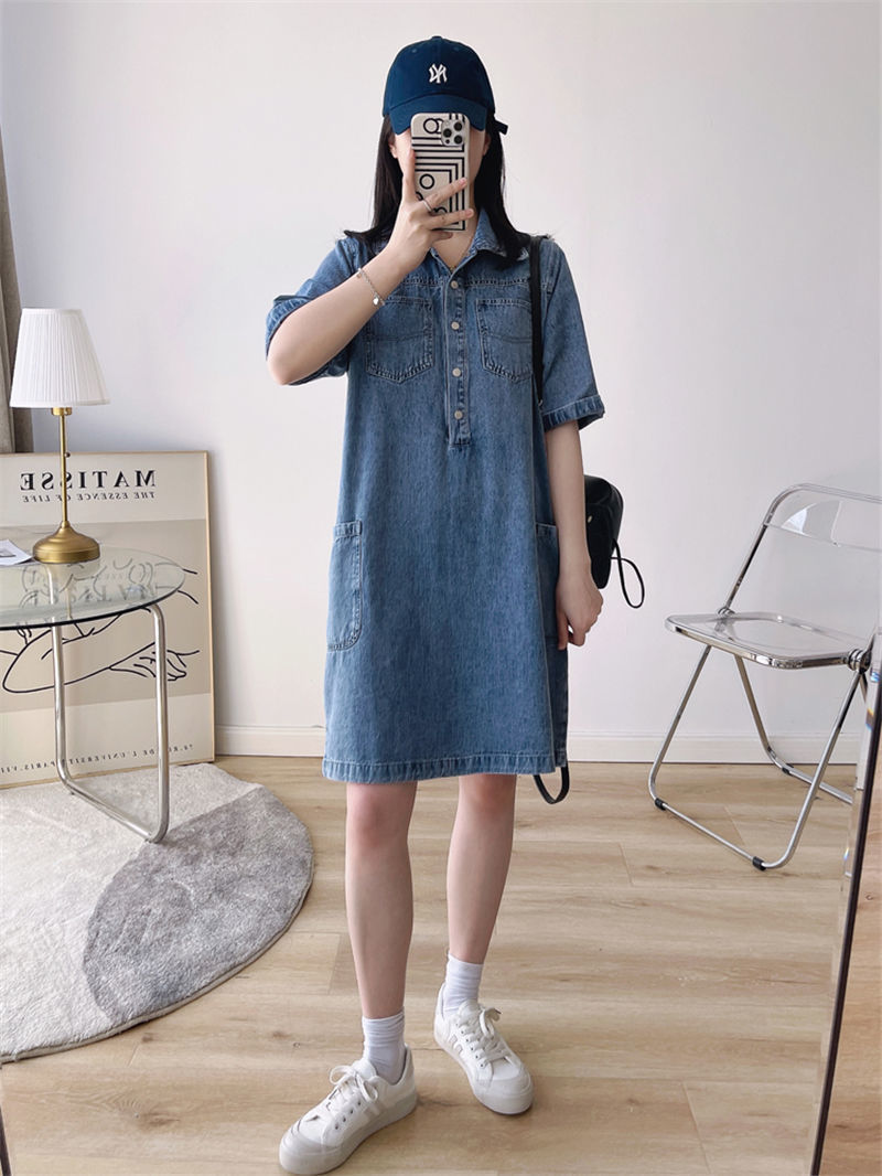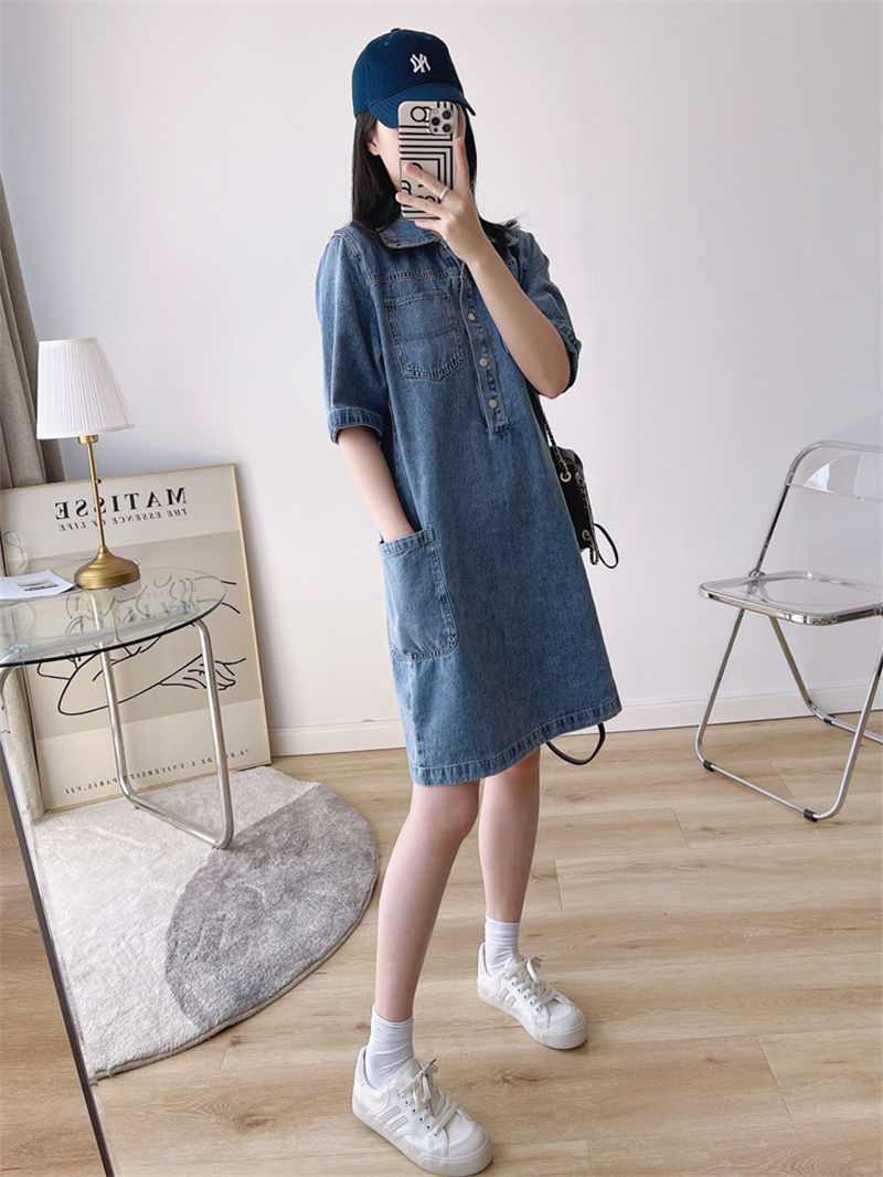 데님 원피스 여자 2024 여름 새로운 한국 팬 느슨한 얇은 슬리밍 우아한 중간 길이 트렌디