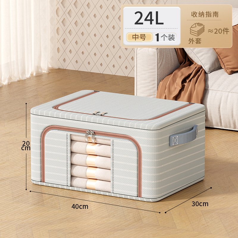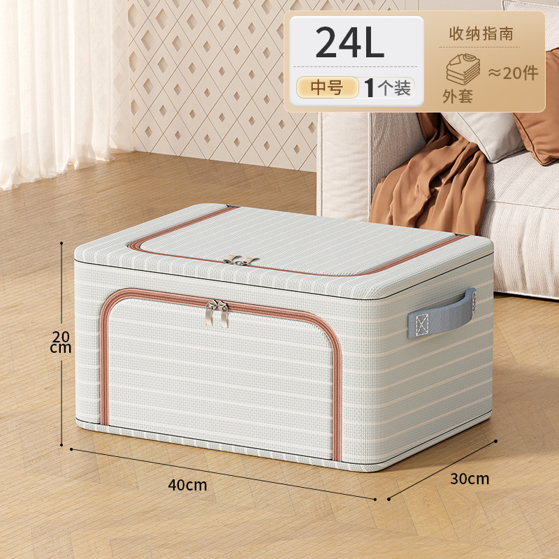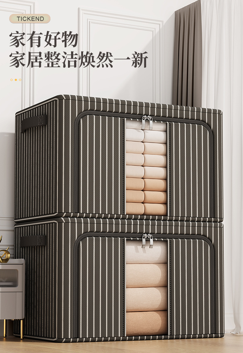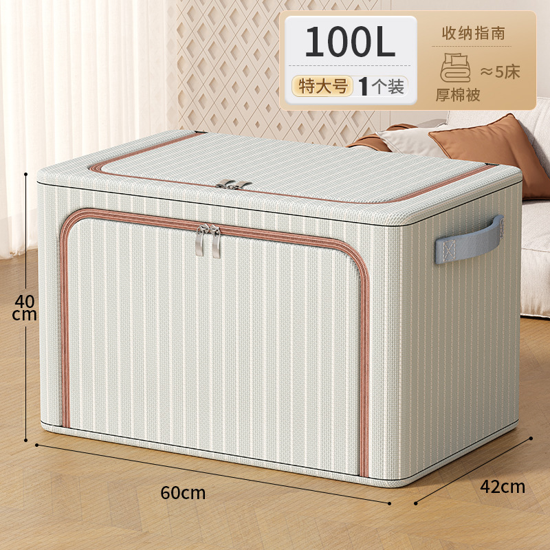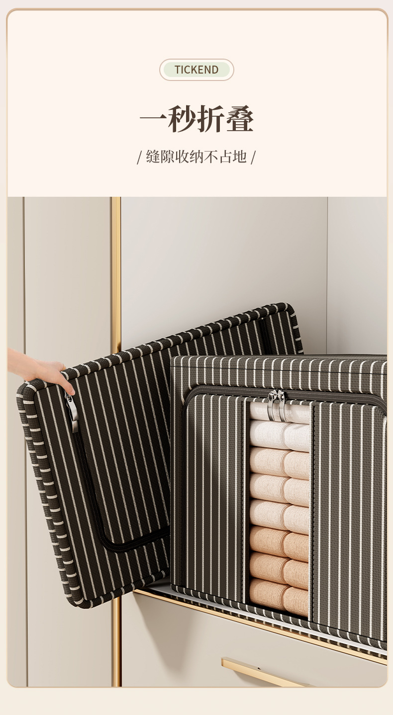 2024 줄무늬 옥스포드 천 강철 프레임 저장 상자 접히는 직물 대형 저장 상자 가정용 옷 이불 저장 상자스토어 가기