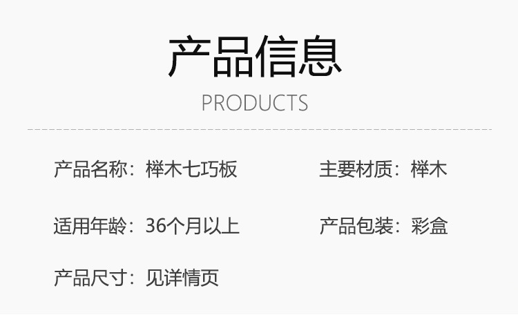 产品名称:彩盒优品榉木七巧板