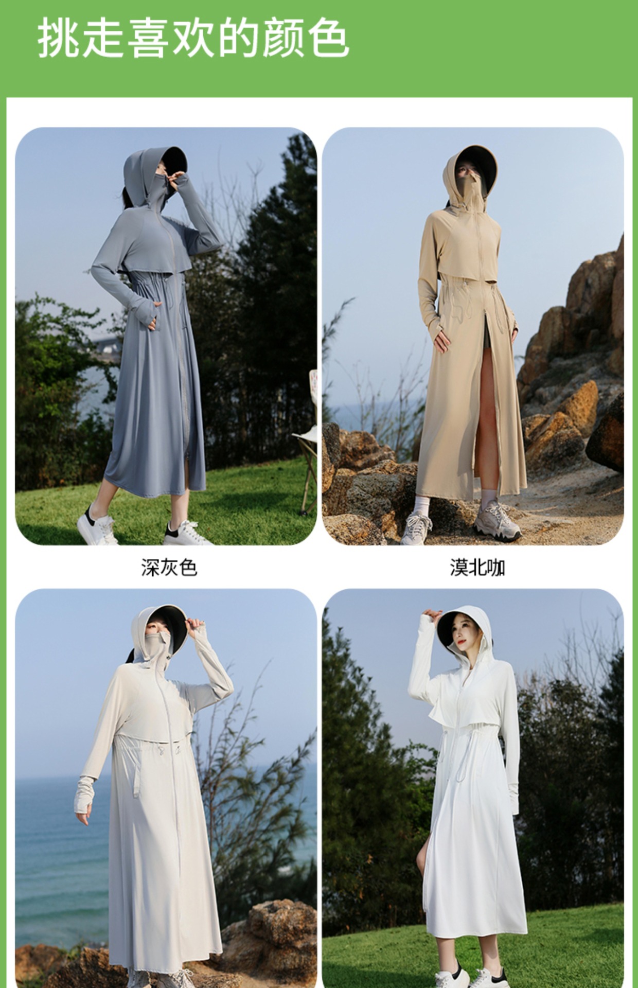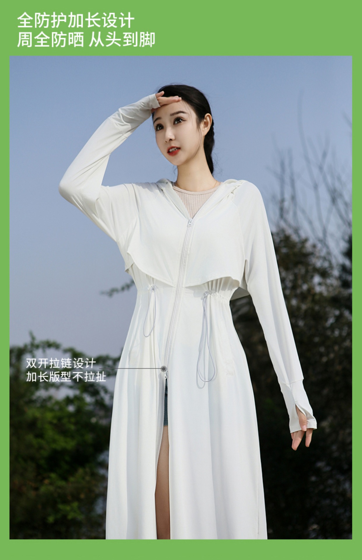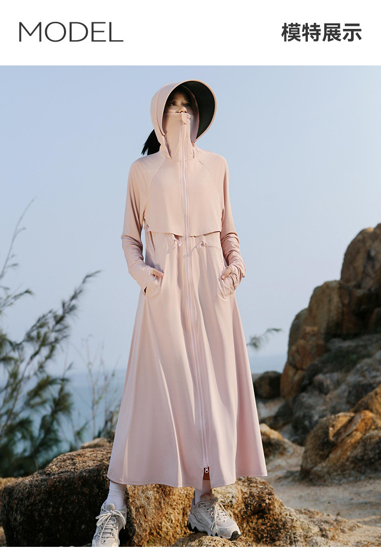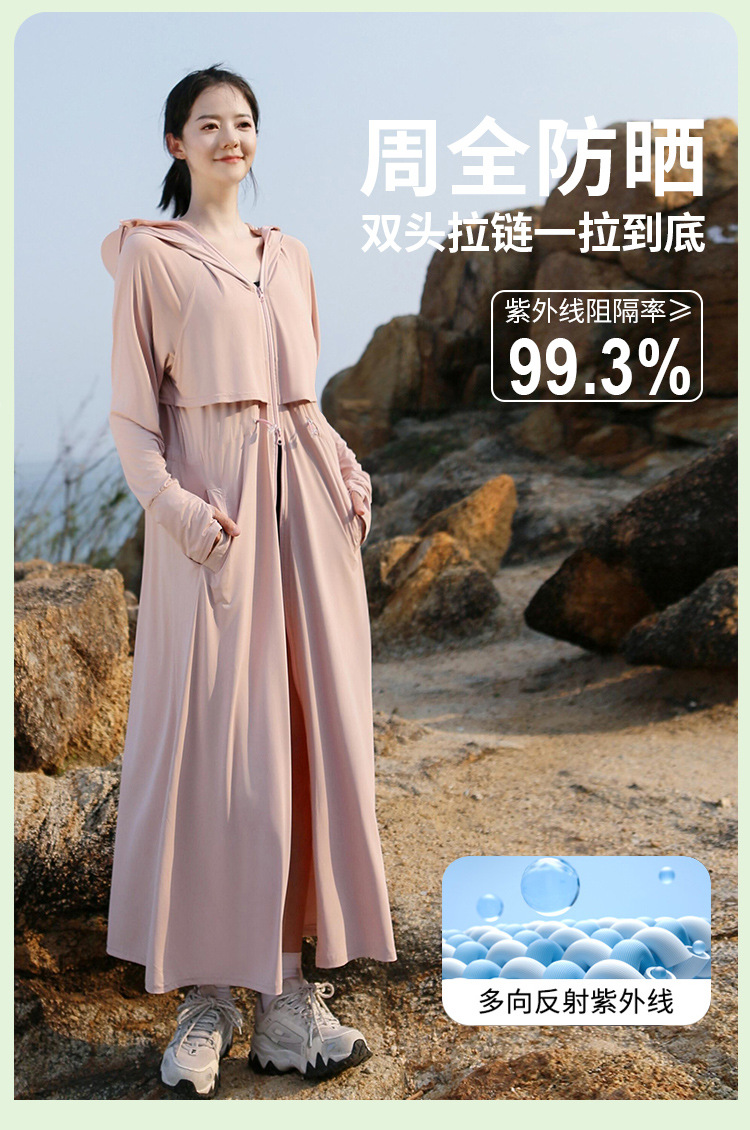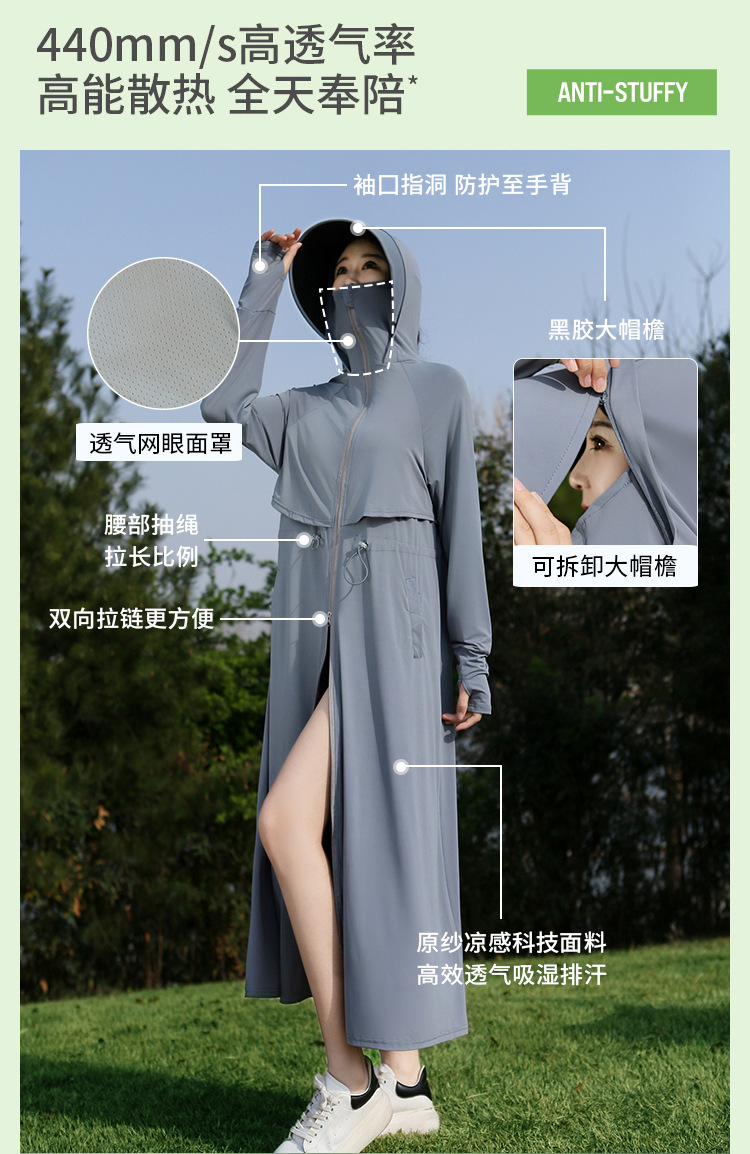 2025 여름 긴 기장 자외선 차단 의류 전신 자외선 차단 아이스 실크 통기성 신상 허리 조절 얇은 자외선 차단 코트스토어 가기