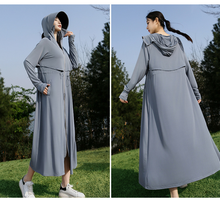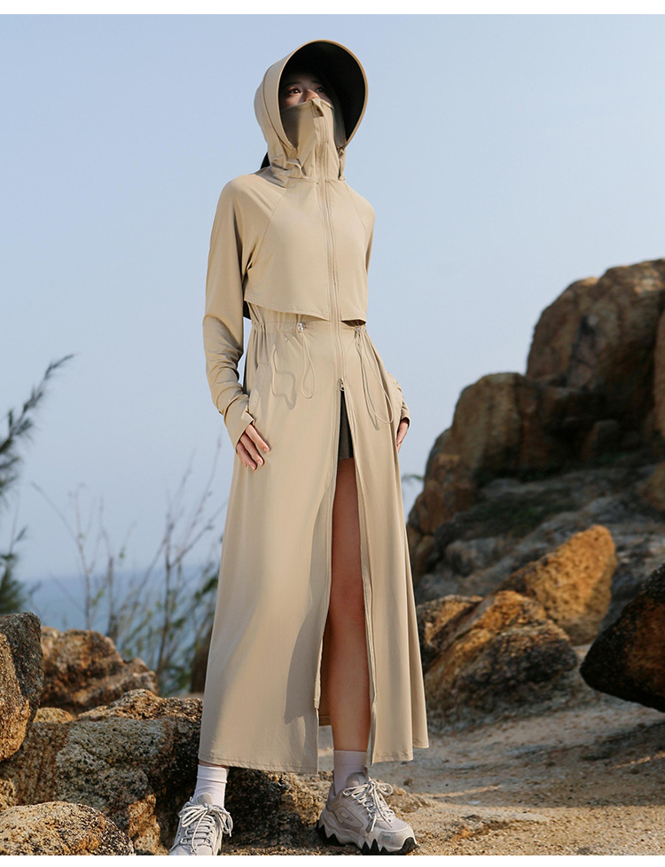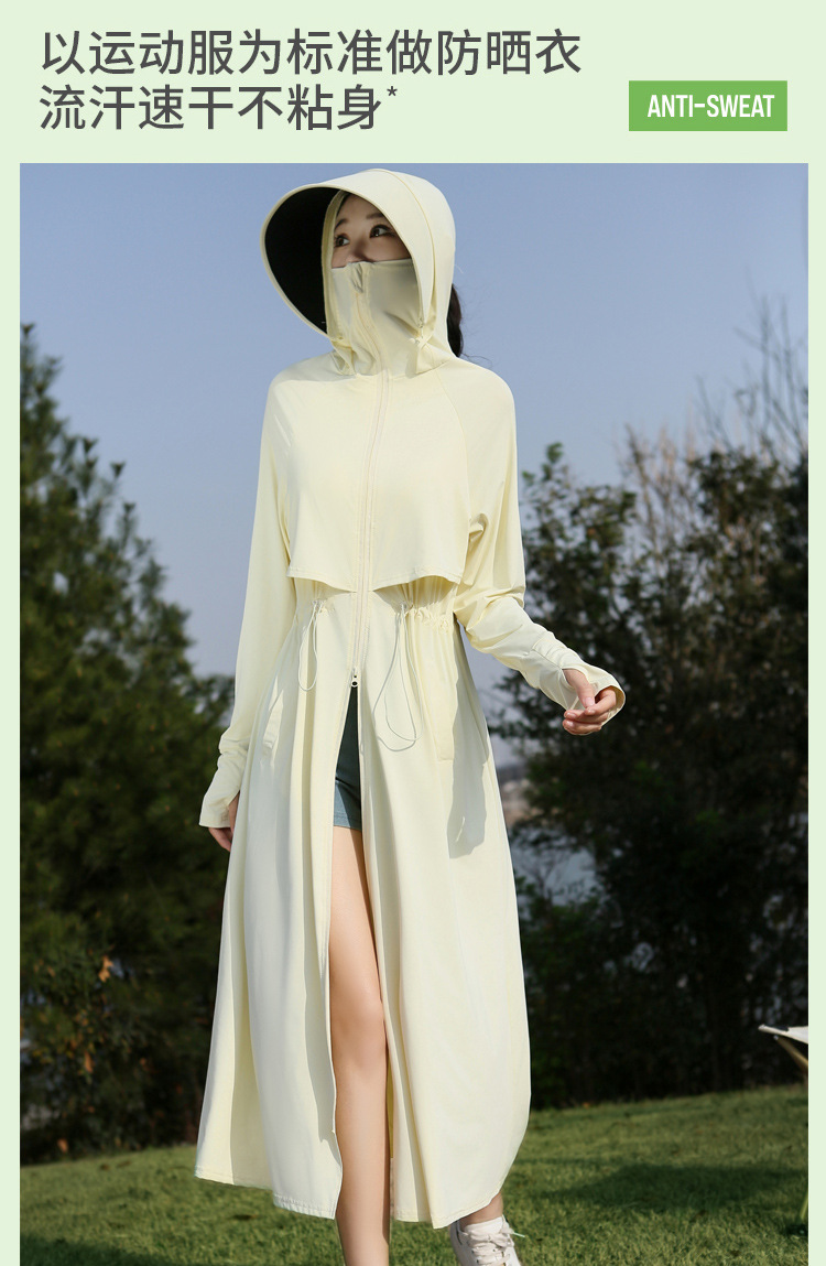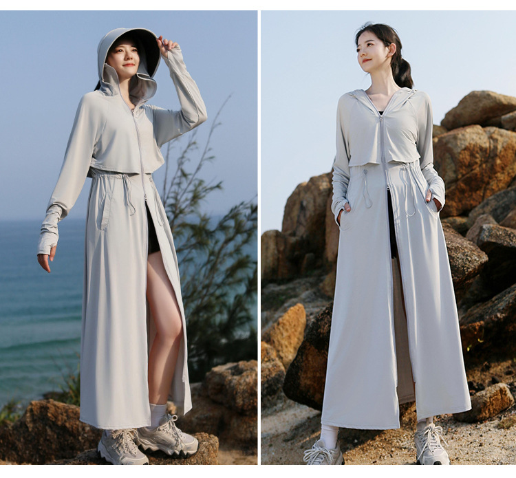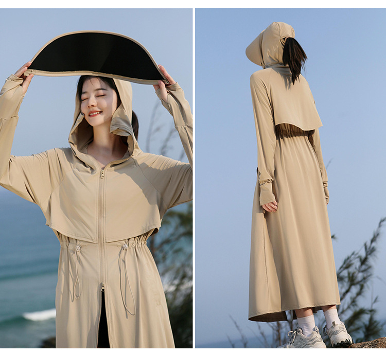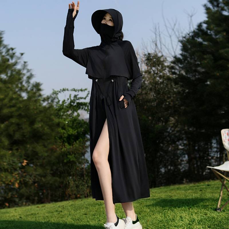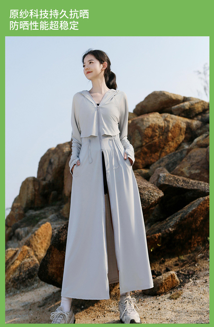 2025 여름 긴 기장 자외선 차단 의류 전신 자외선 차단 아이스 실크 통기성 신상 허리 조절 얇은 자외선 차단 코트