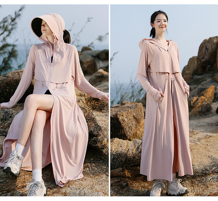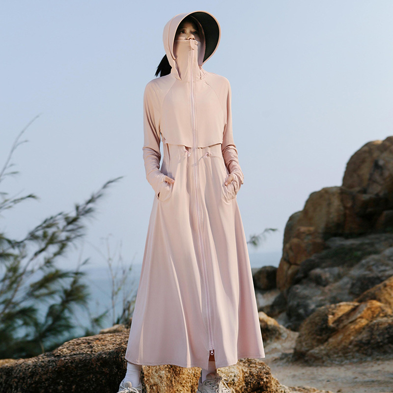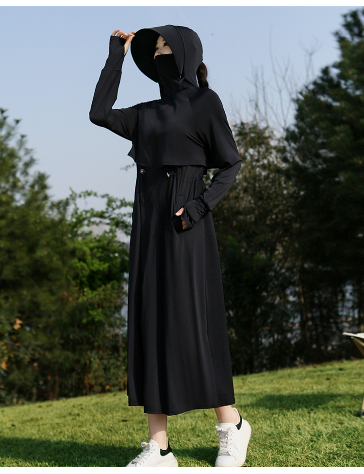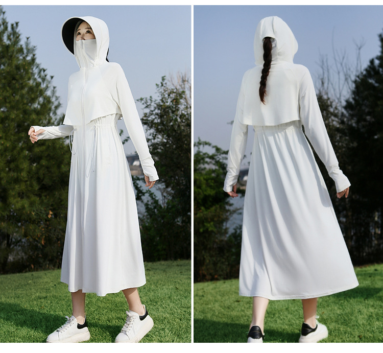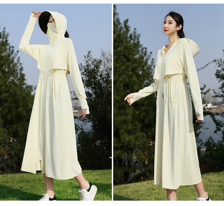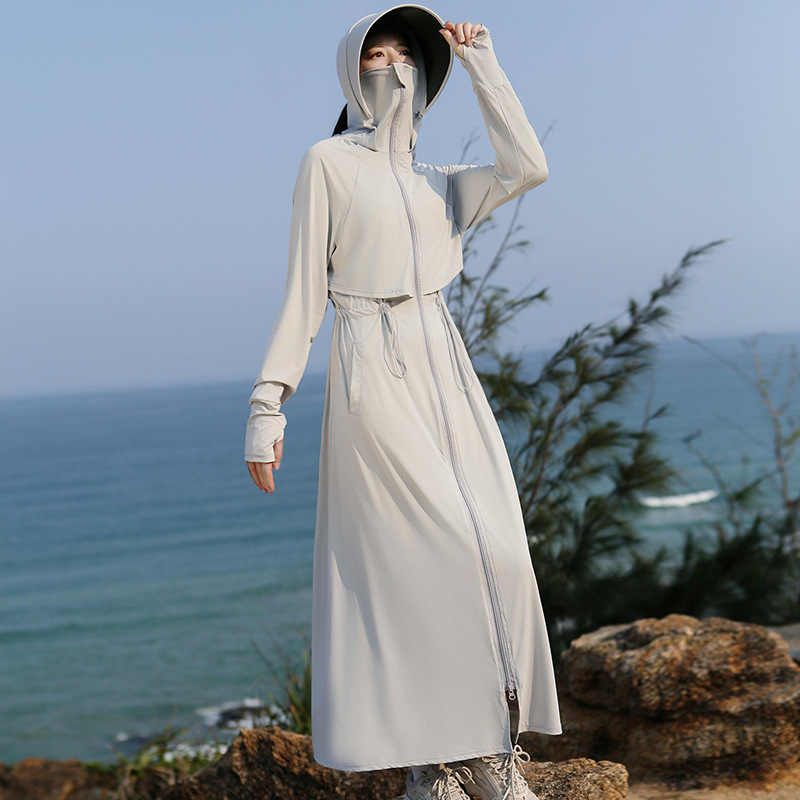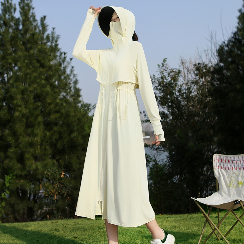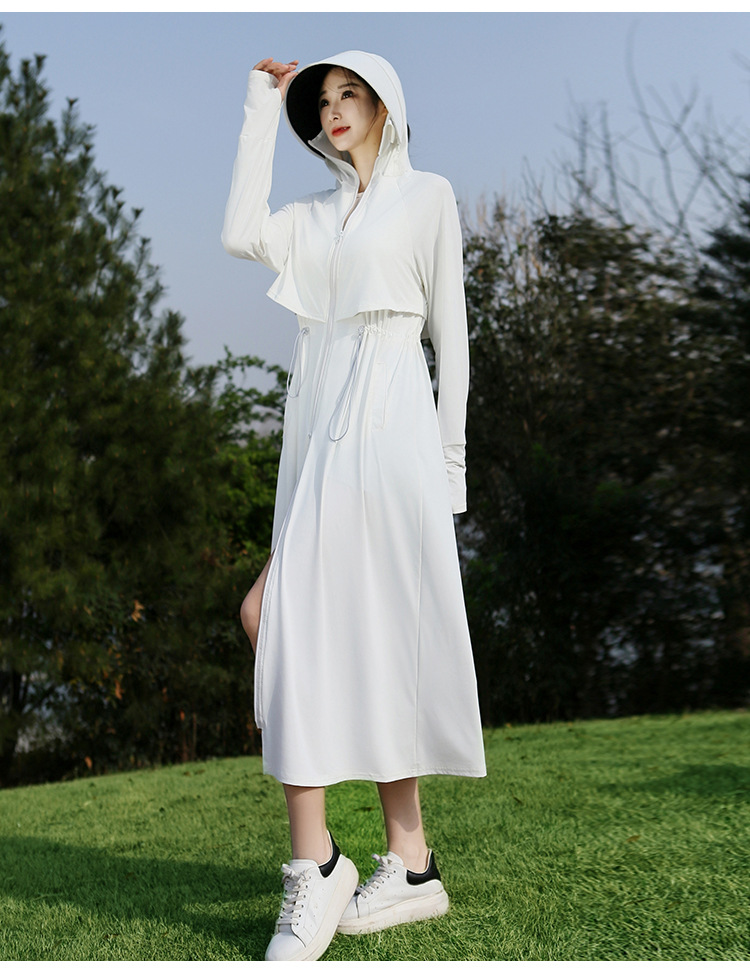 2025 여름 긴 기장 자외선 차단 의류 전신 자외선 차단 아이스 실크 통기성 신상 허리 조절 얇은 자외선 차단 코트
