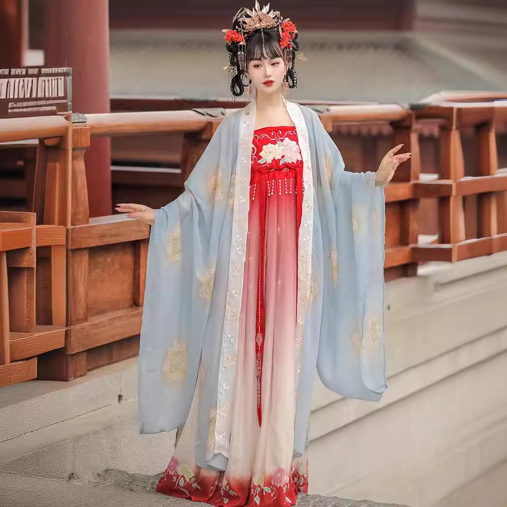 원래 한푸 여성의 붉은 큰 소매 셔츠 탕 스타일 가슴 치불 스커트 중국 스타일 고대 원피스 웨딩 원피스 꽃 웨딩 슈퍼 요정 봄 스타일스토어 가기