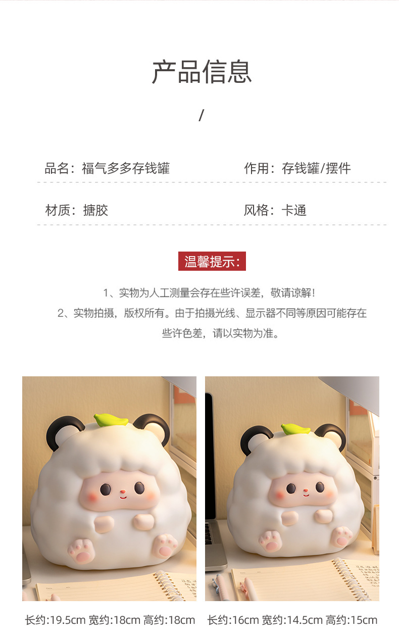 创意礼品小绵羊存钱罐可进可出搪胶防摔储蓄罐儿童生日礼物装饰品