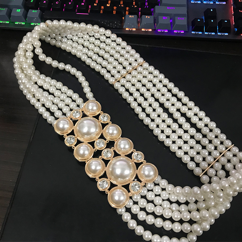 진주 와이드 벨트 여성 원피스 패션 올 매치 탄성 허리 씰 세트 장식 벨트 하이 엔드 액세서리스토어 가기