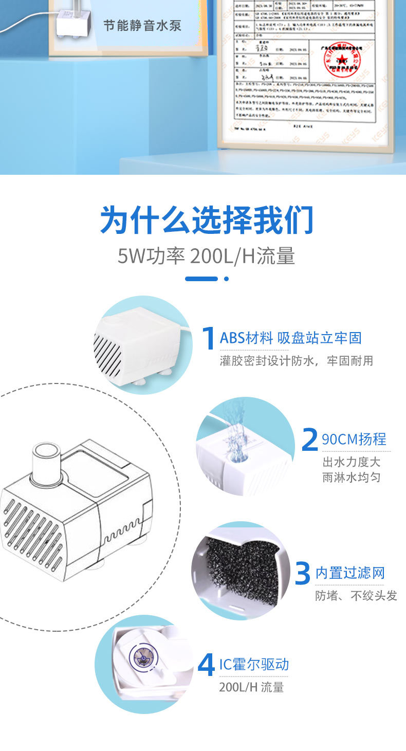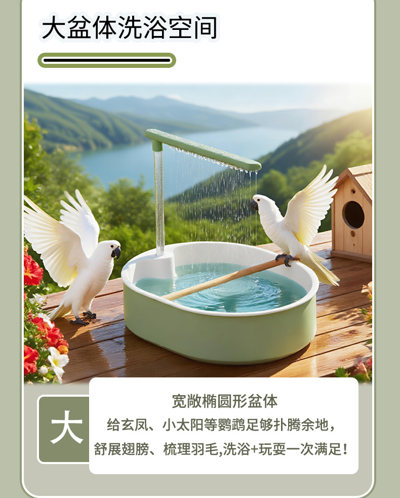 • 청회색 앵무새 화분 + 녹색 복열 레인 샤워기 + 투명 튜브 + 워터 펌프 + 소나무 1.1 구경