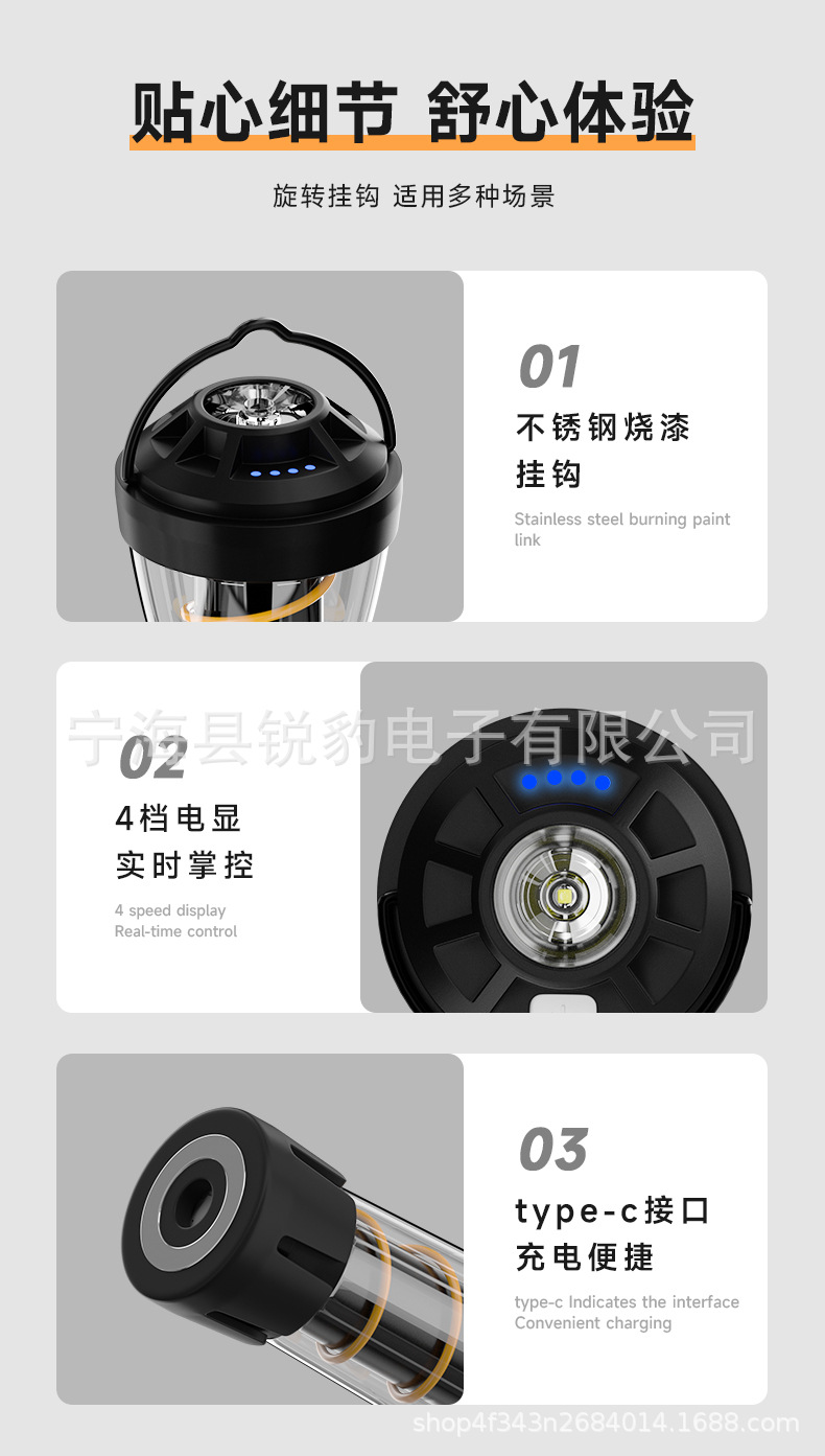 캠핑 조명 야외 조명 비상 조명 휴대용 조명 긴 배터리 수명 충전 캠핑 조명 분위기 야외 텐트 조명스토어 가기