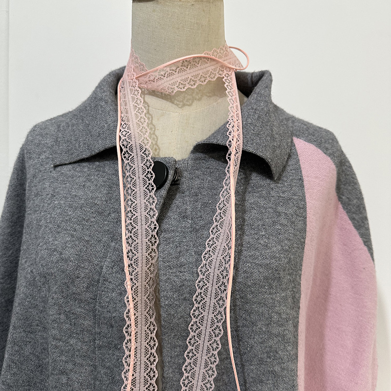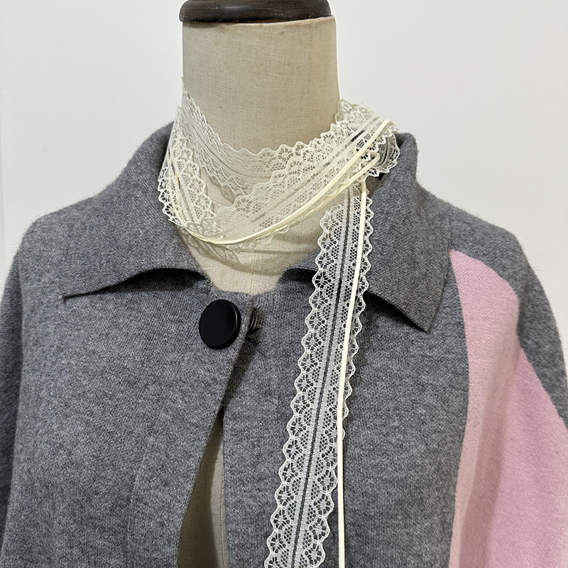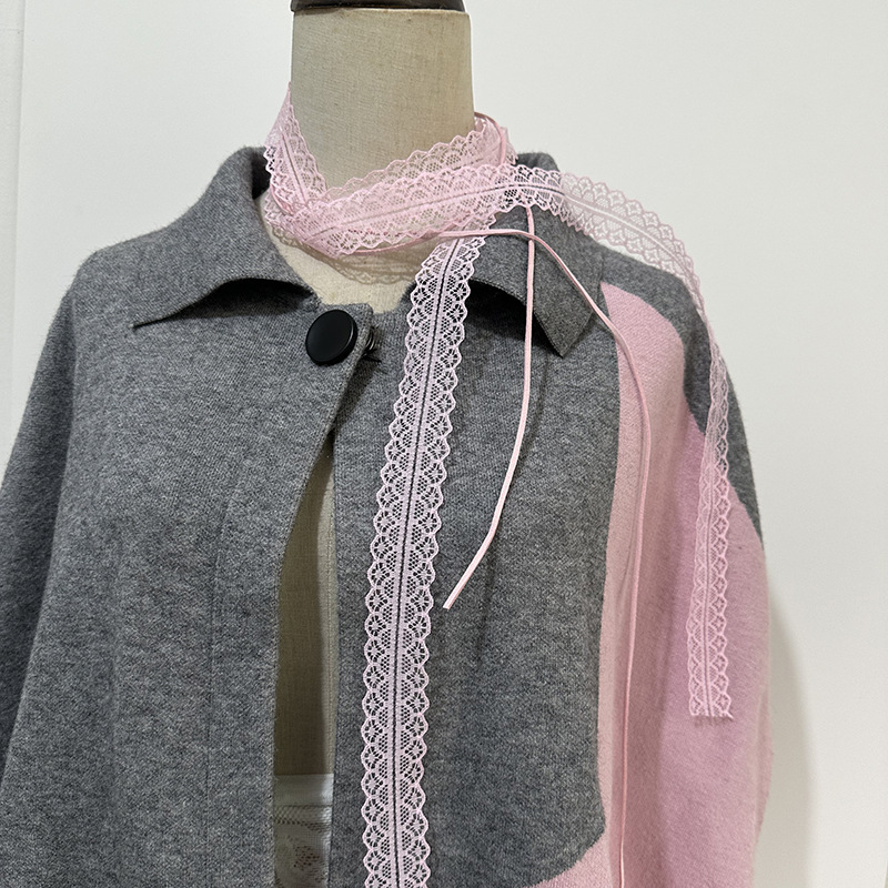 레이스 소녀풍 얇은 실크 스카프 벨트 리본 순수한 매력 겹쳐 착용 스타일 스카프 목걸이 스타일리시한 여성용 레이스 디자인