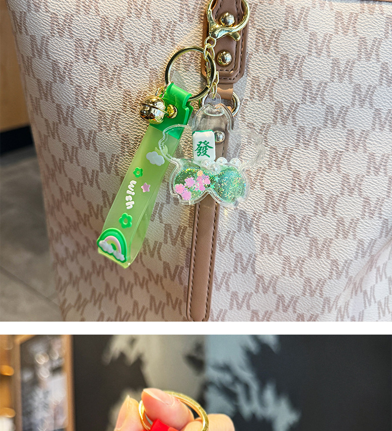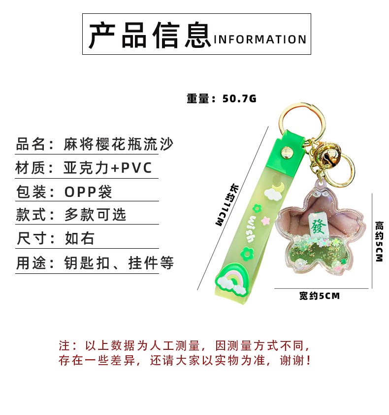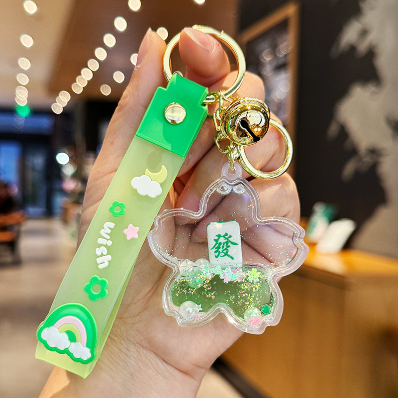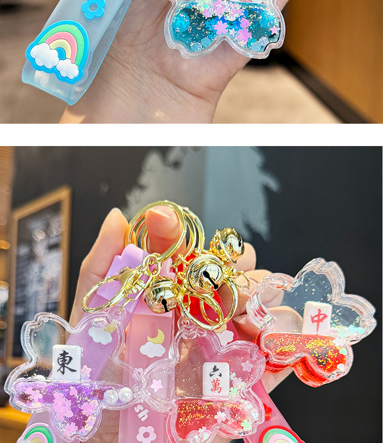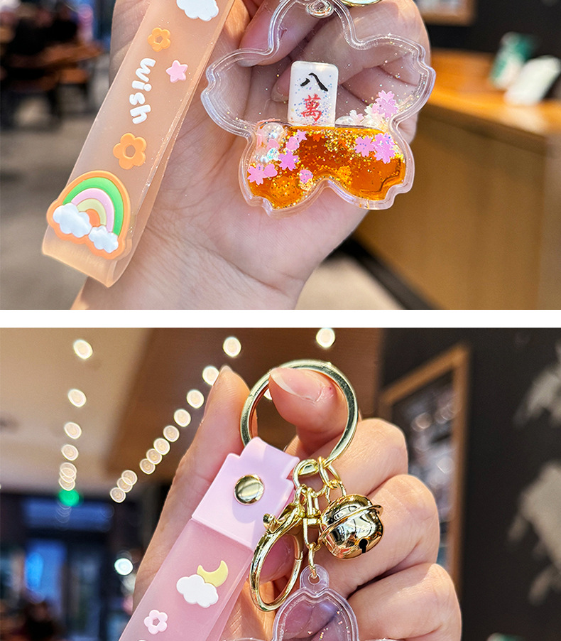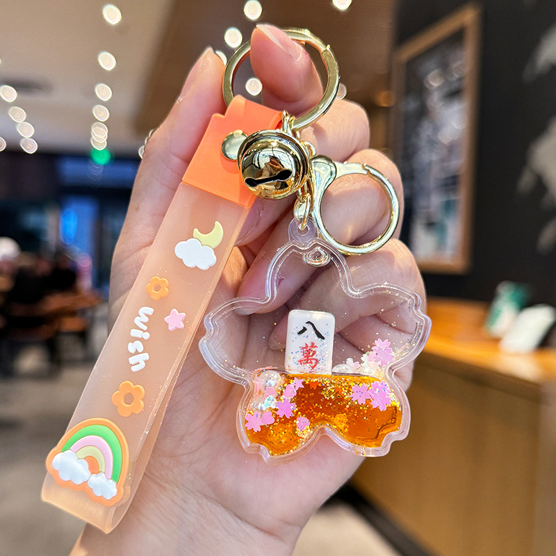 창조적 인 마작 붉은 포춘 모래 병 키 체인 여성의 귀여운 벚꽃 플로팅 액체 펜던트 절묘한 키 체인스토어 가기
