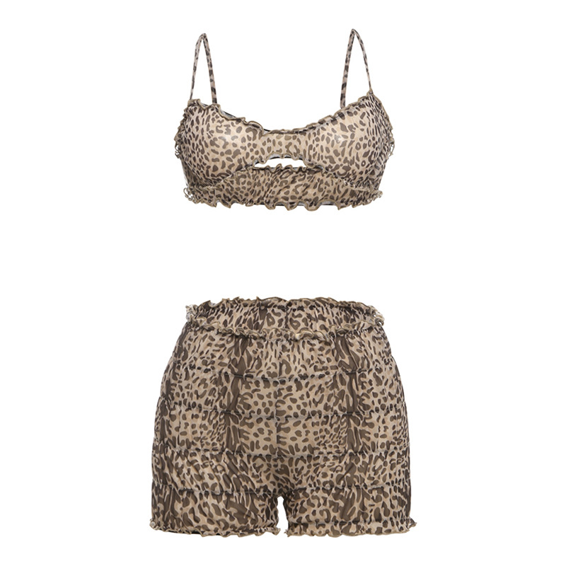 유럽과 미국 여성의 2024 여름 새로운 섹시한 레오파드 레이스 넥 탑 뜨거운 소녀 케이크 스커트 반바지 세트 여성스토어 가기