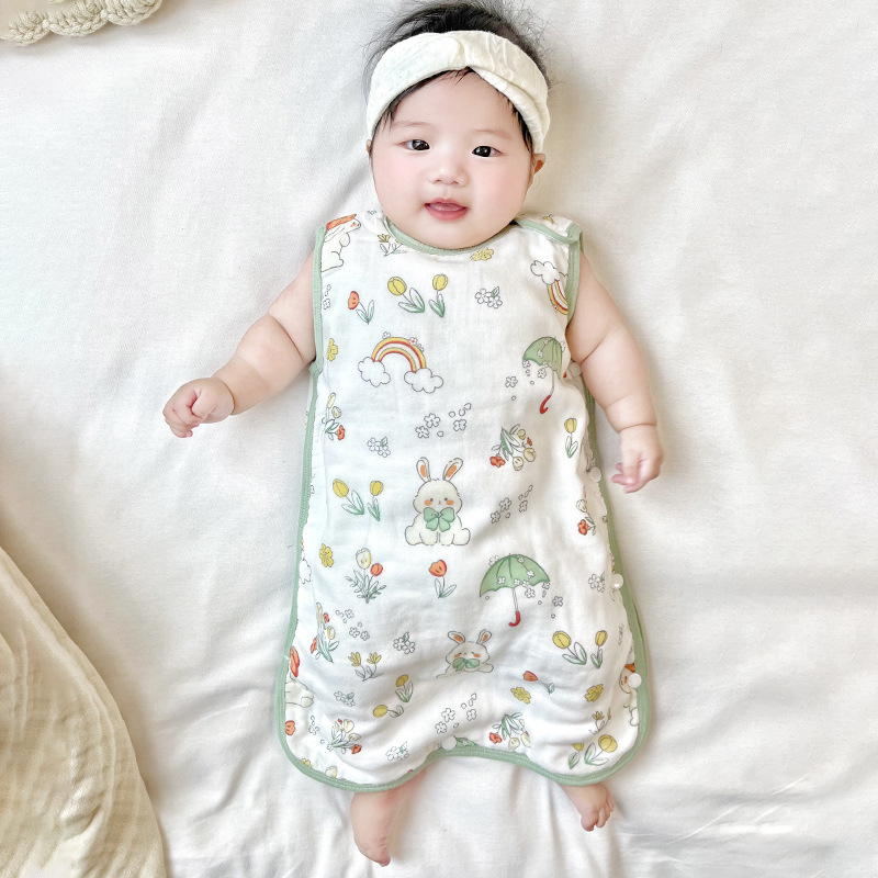 대나무 면 슬리핑 백 베이비 클래스 여름 얇은 거즈 베이비 배꼽 보호 킥 방지 퀼트 대나무 섬유 조끼 배꼽 보호 잠옷