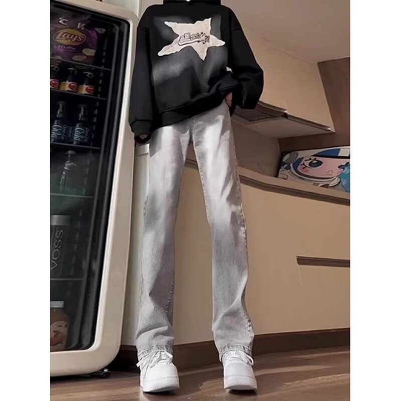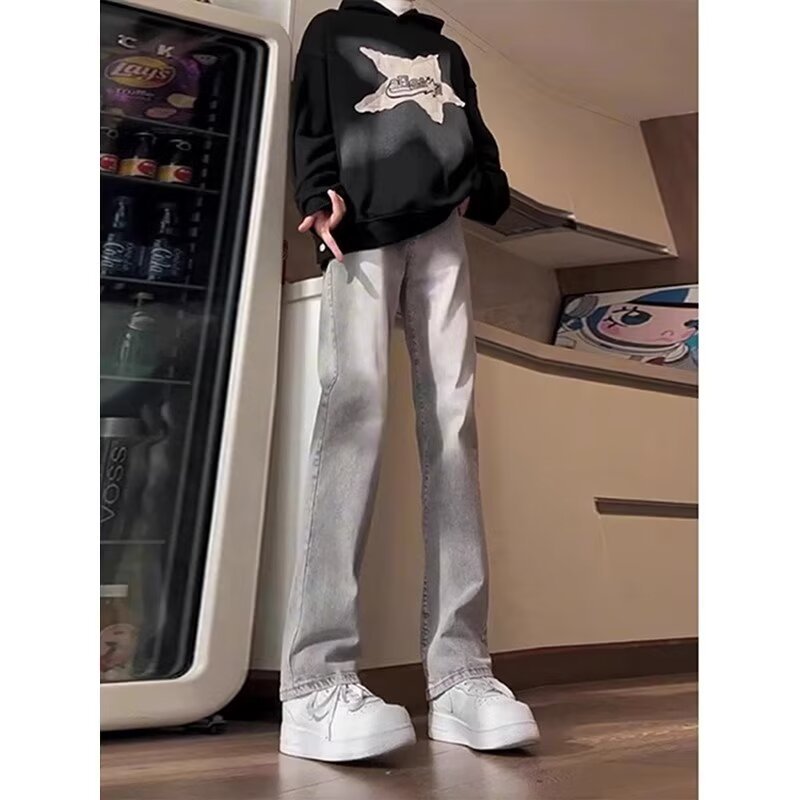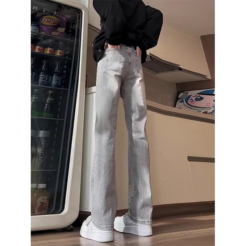 남성 가을 겨울 청바지 남성 가을 겨울 아메리칸 레트로 하이 스트리트 슬림 스트레이트 스모크 그레이 약간의 플레어 남성 패션스토어 가기