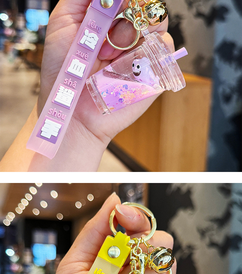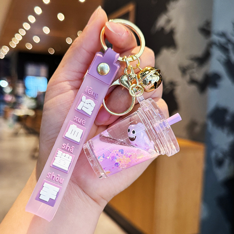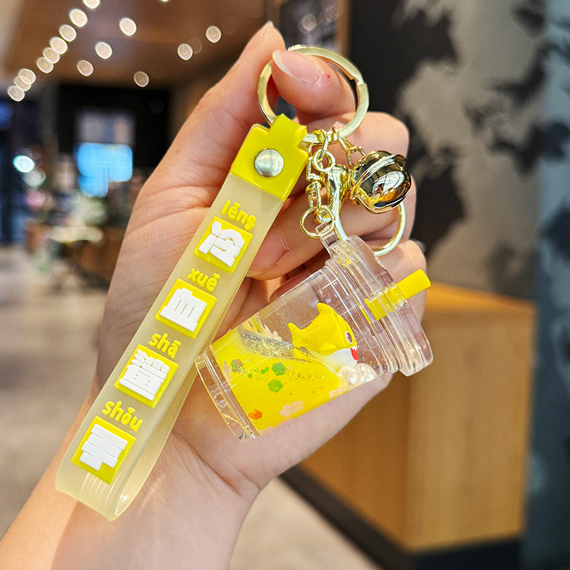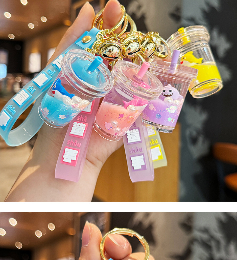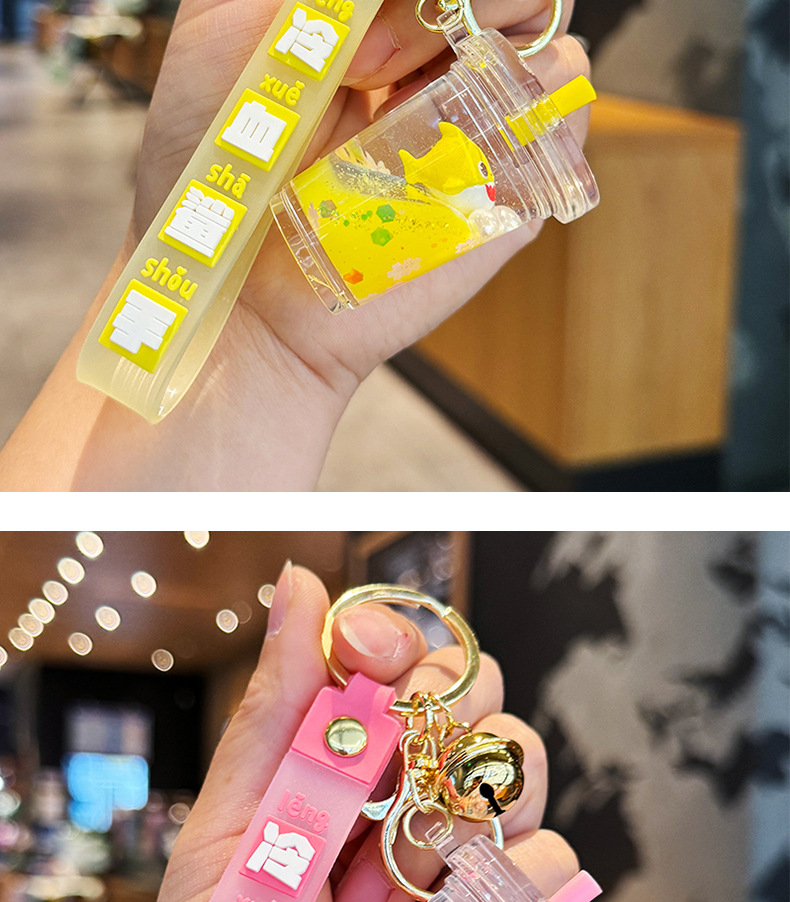 손가락 물린 상어 퀵 샌드 인형 키 체인 오일 액체 우유 티 컵 절묘한 펜던트 여성용 가방 펜던트 선물