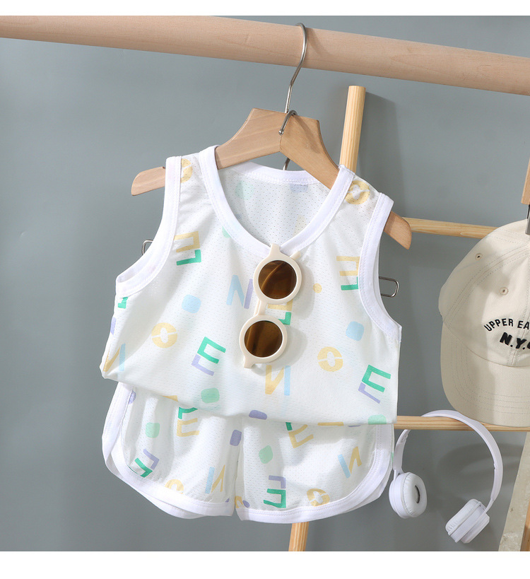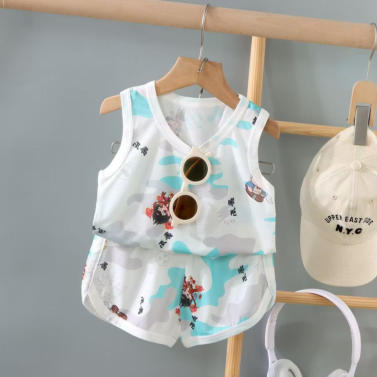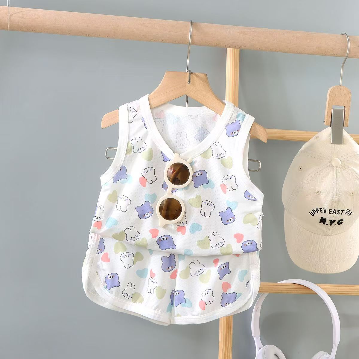 아기 어린이 세트 아동복 여름 새 소년과 소녀 만화 얇은 민소매 조끼 반바지 세트 트렌디스토어 가기