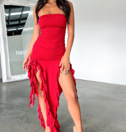 2024 국경 봄 패션 트렌드 여성의 새로운 스타일 오프 숄더 튜브 랩 힙 슬림 불규칙한 원피스