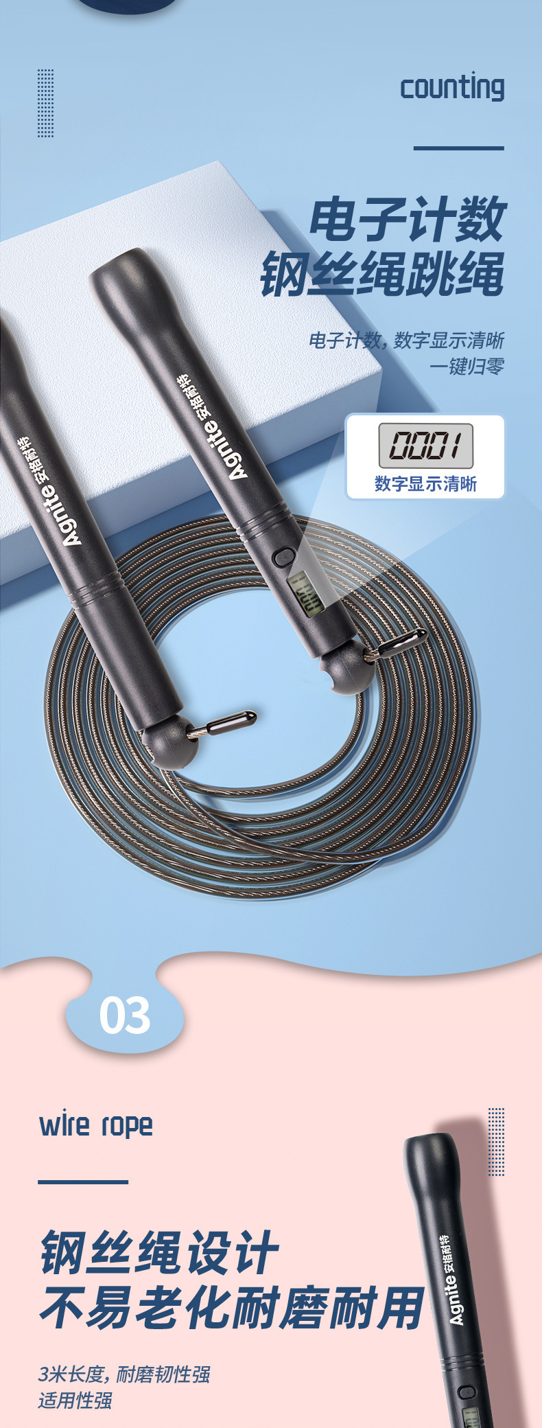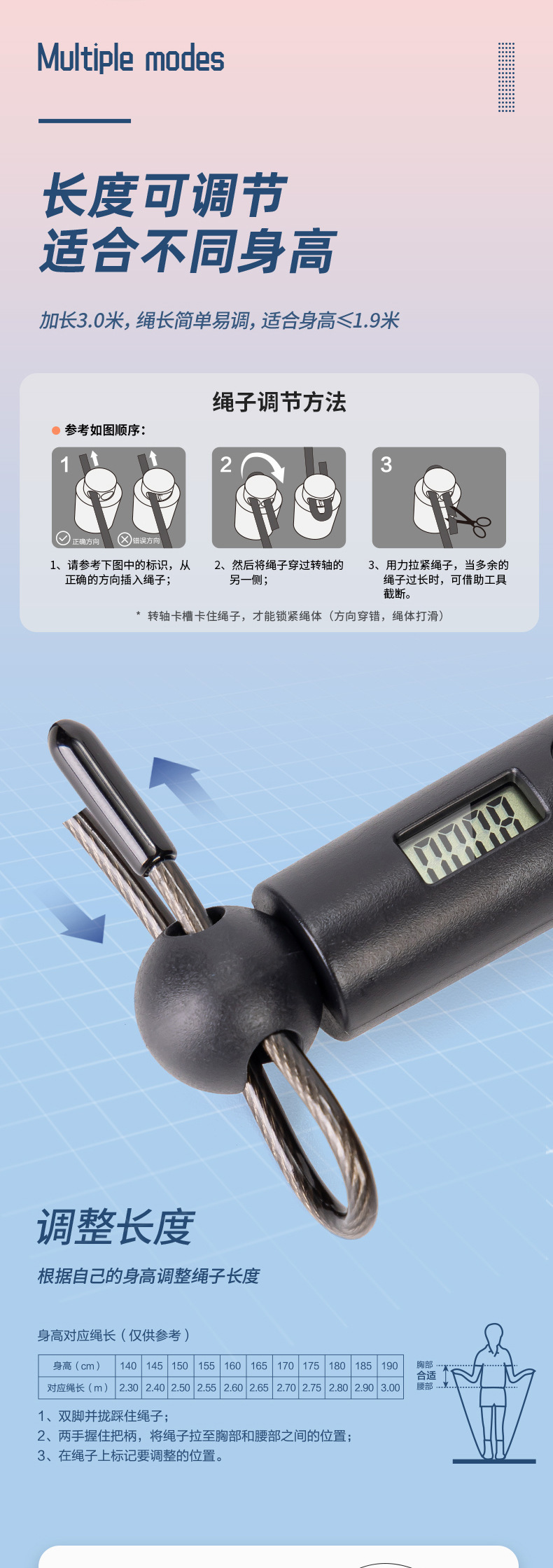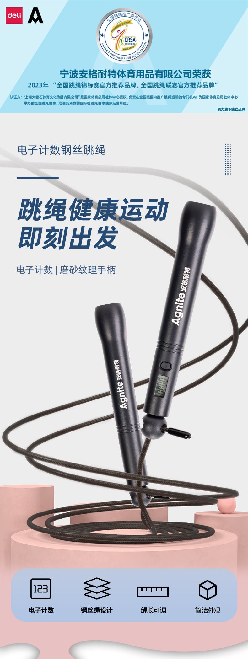 Deli FT129 전자 계산 레이싱 와이어 로프, 고등학교 입학 시험 학생들을위한 특별 2.8 건너 뛰기 롱 레이싱 로프 건너 뛰기 피트니스스토어 가기