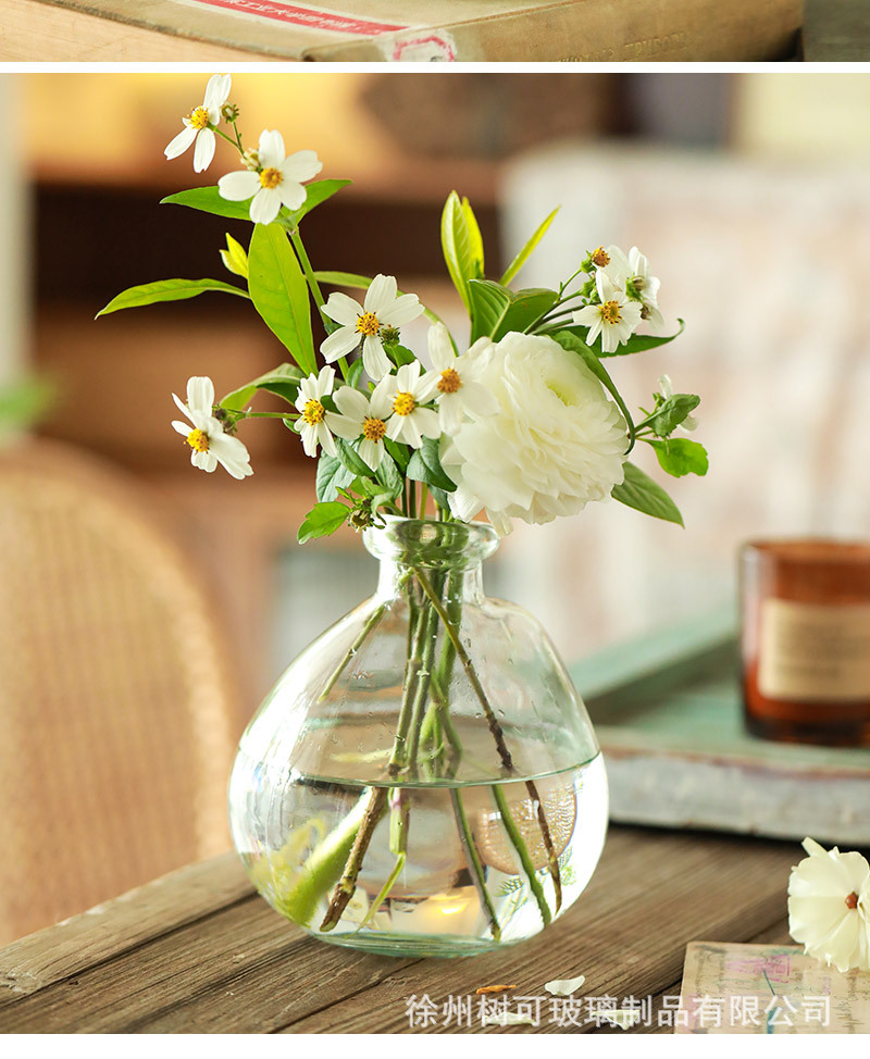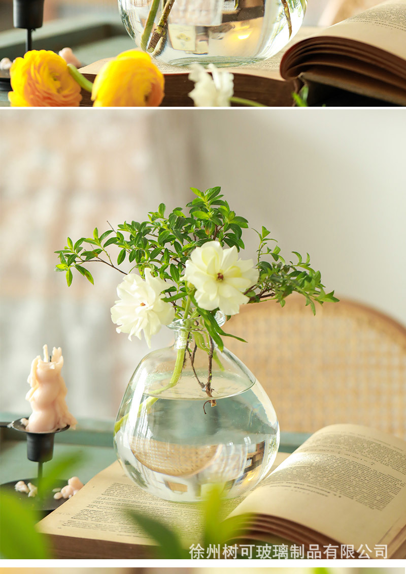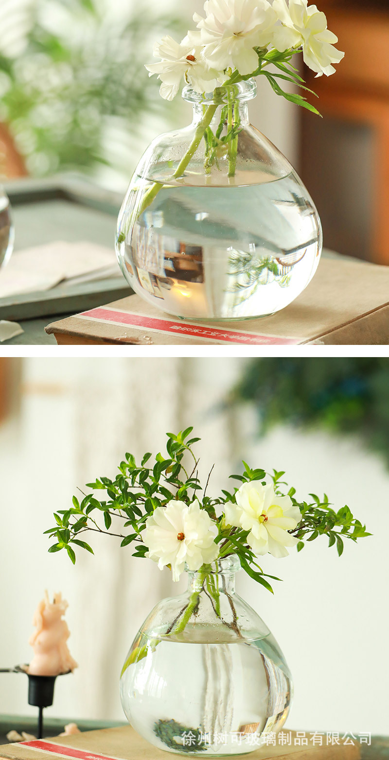 새로운 투명 유리 꽃병 불규칙한 기하학적 작은 입 꽃 장치 거실 꽃꽂이 홈 장식품 도매