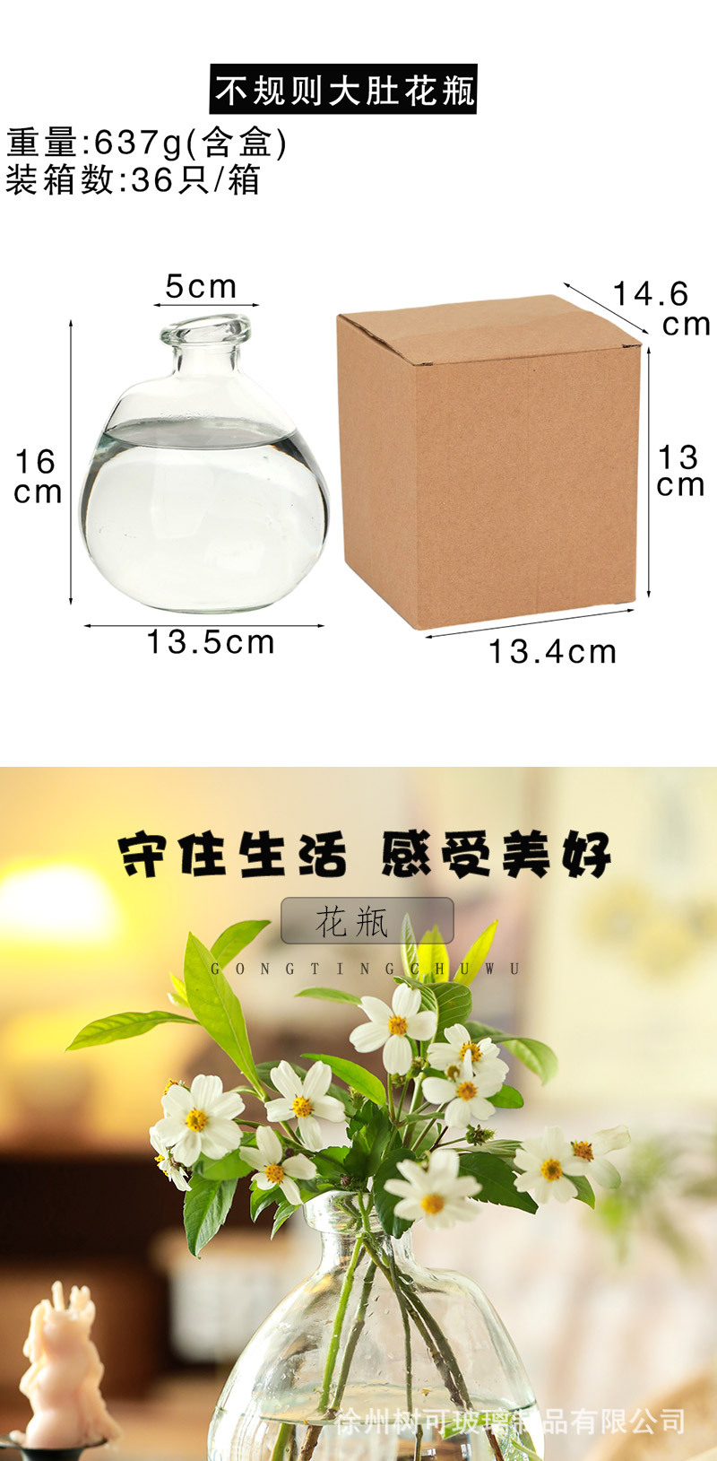 새로운 투명 유리 꽃병 불규칙한 기하학적 작은 입 꽃 장치 거실 꽃꽂이 홈 장식품 도매스토어 가기