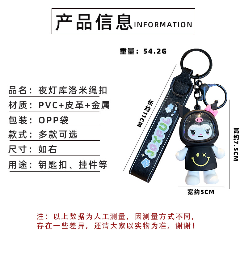 일본 산리오 쿨로 미 빛나는 야간 조명 키 체인 창조적 인 자동차 키 체인 어린이 학교 가방 펜던트 선물스토어 가기