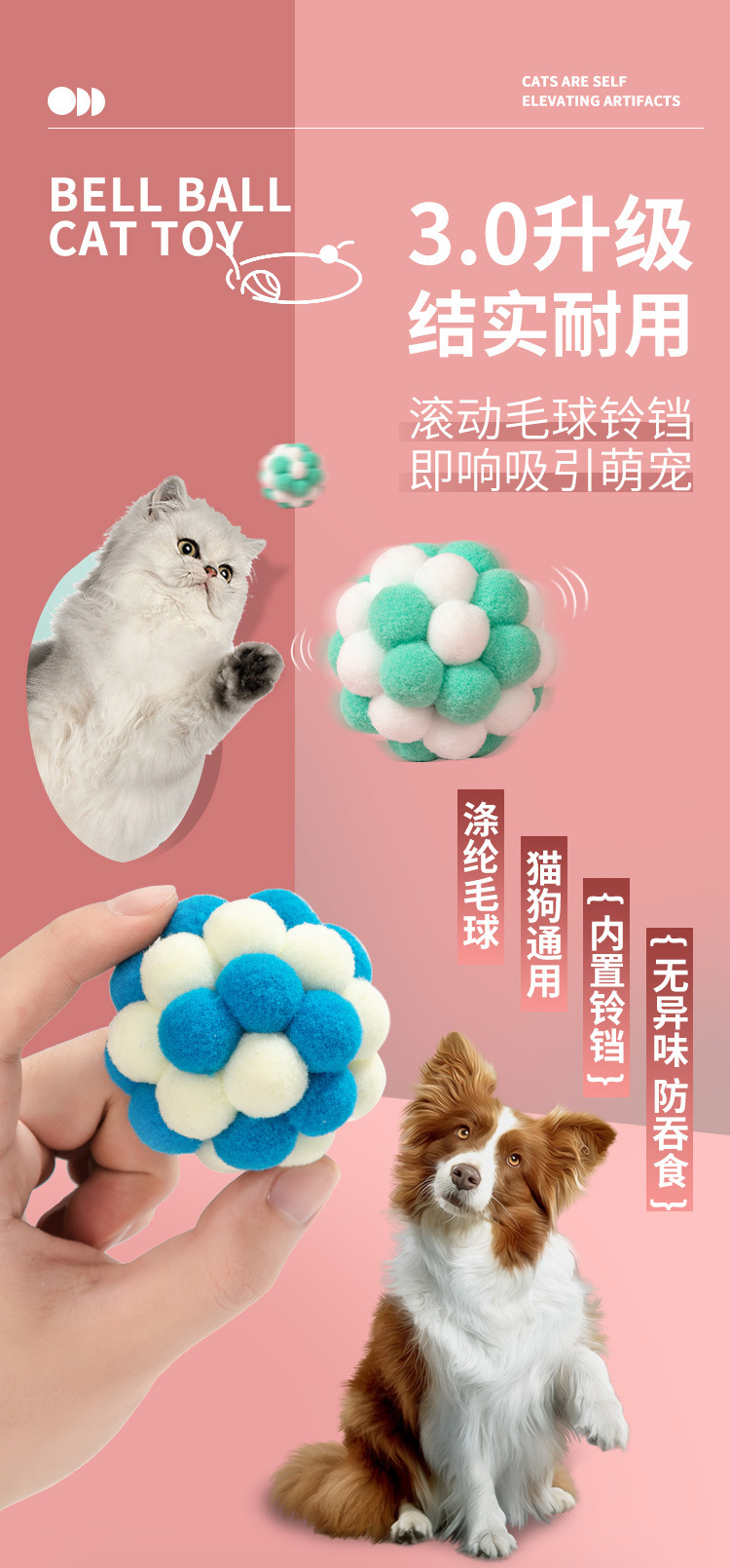 국경 새 고양이 장난감 봉제 벨 고양이 공 자기 구호 폴리에스테르 높은 탄성 수제 귀여운 장난감 공스토어 가기