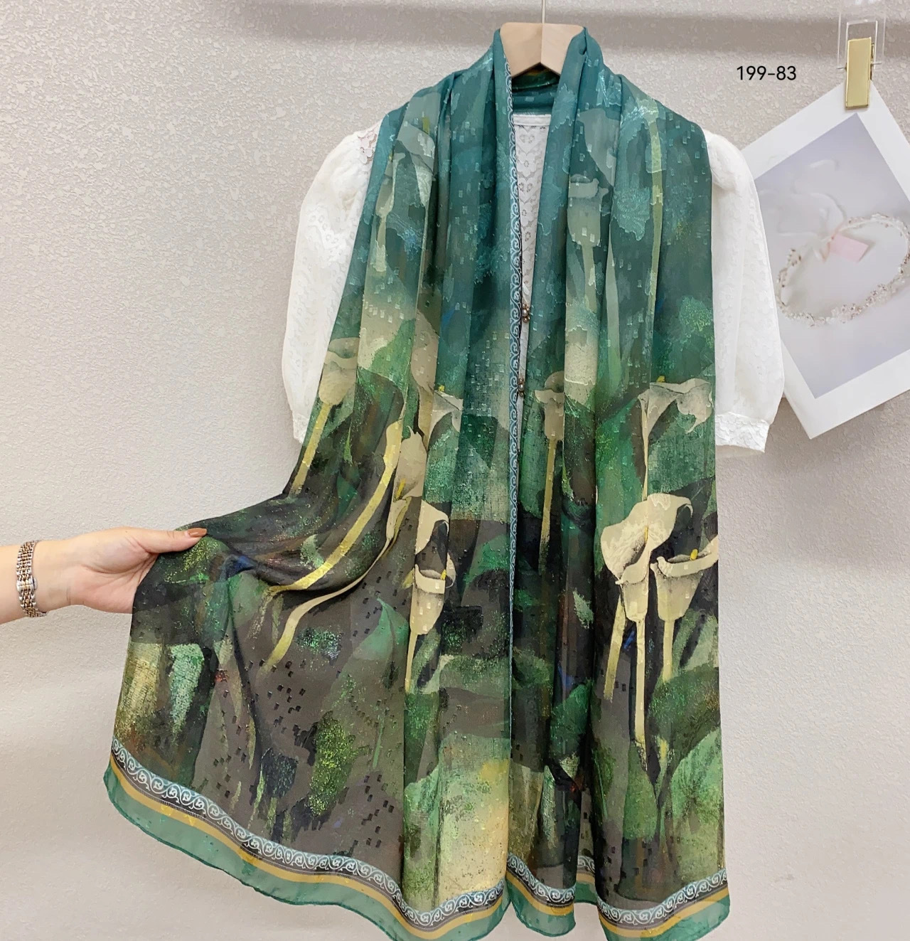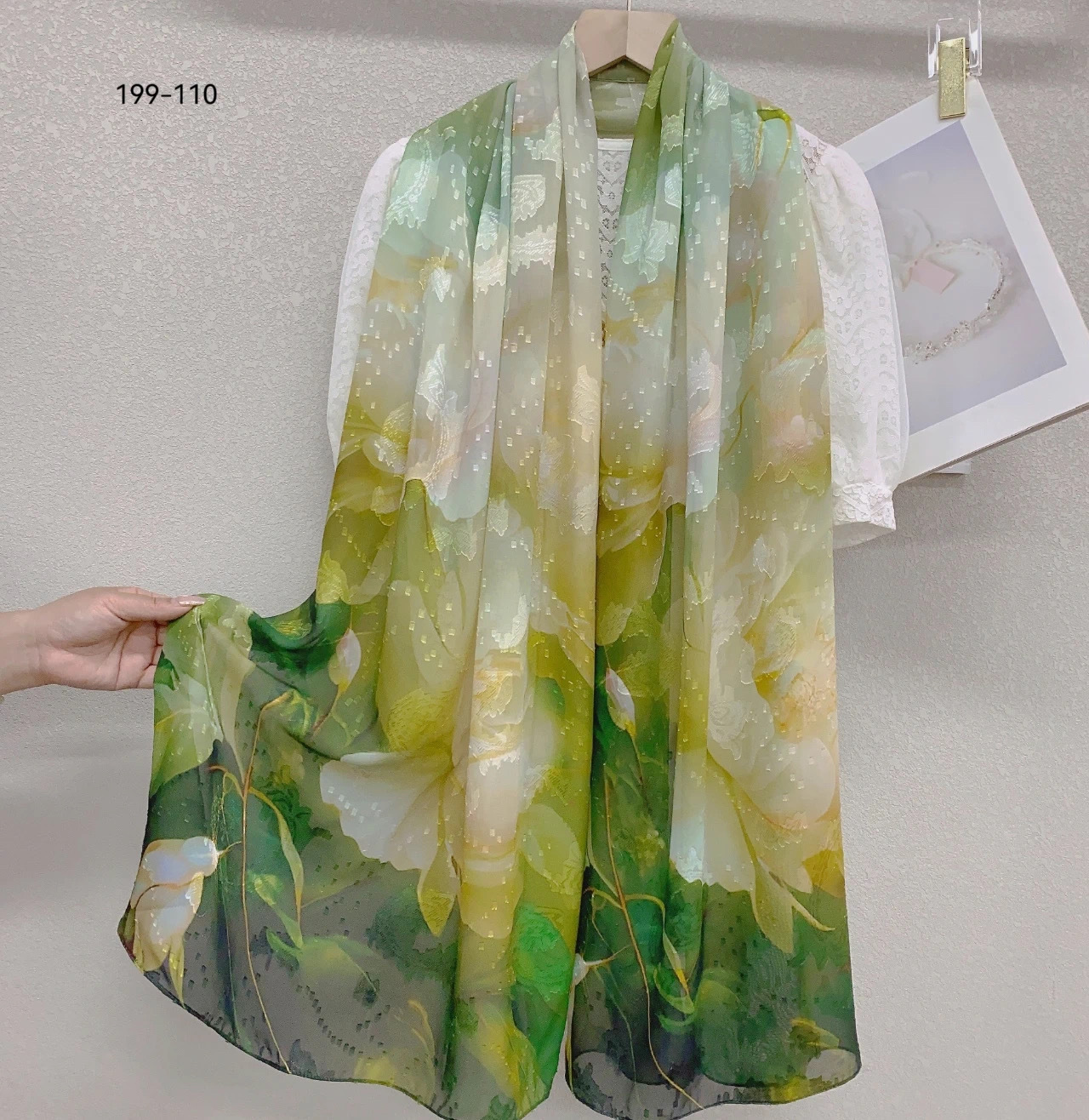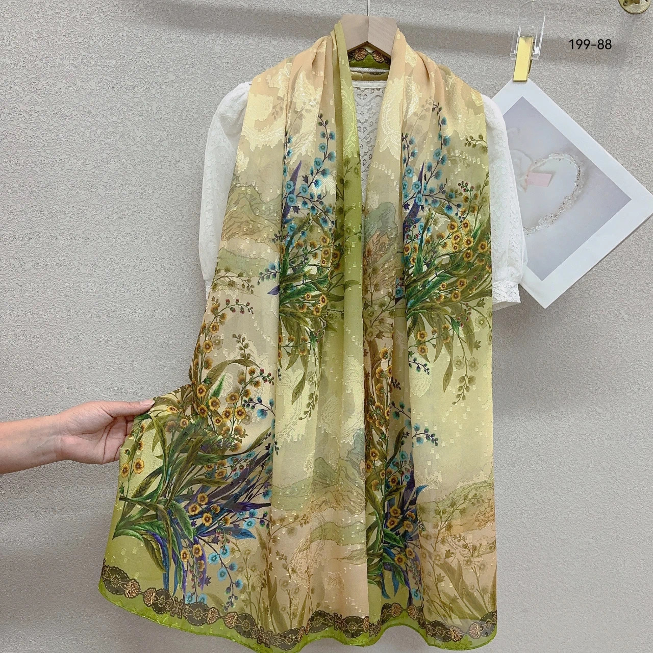 Guofeng 레트로 그린 실크 수제 목도리 컷 꽃 긴 스카프 여성의 여름 태양 보호 외부 착용 새로운 얇은 고급 실크 스카프