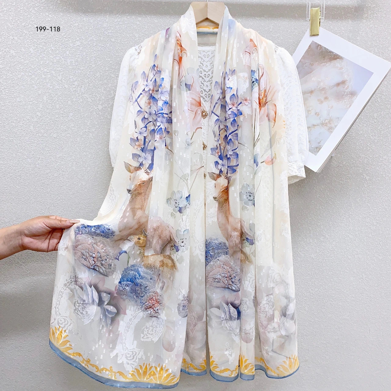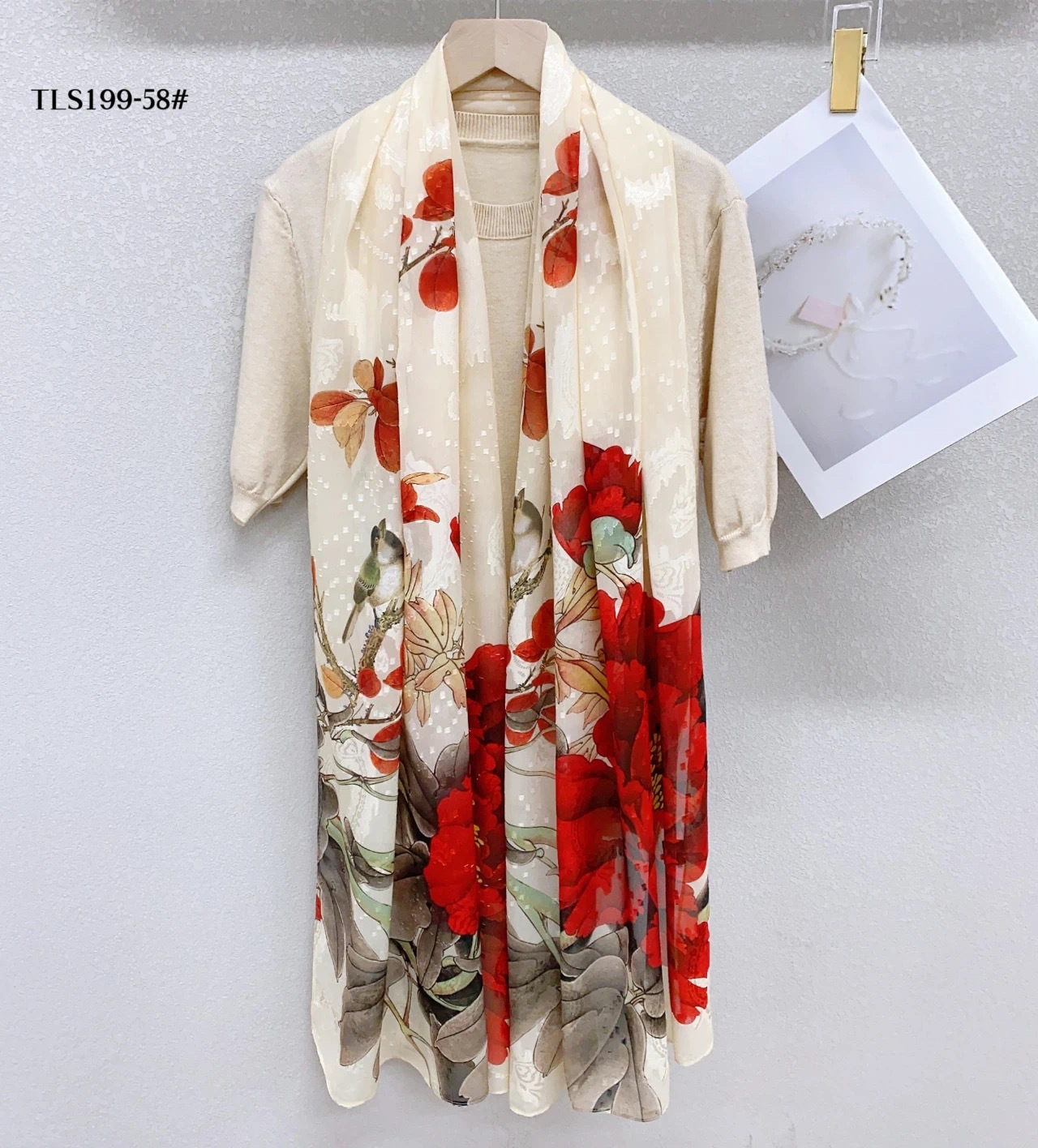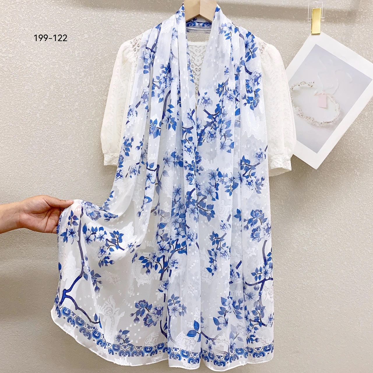 Guofeng 레트로 그린 실크 수제 목도리 컷 꽃 긴 스카프 여성의 여름 태양 보호 외부 착용 새로운 얇은 고급 실크 스카프