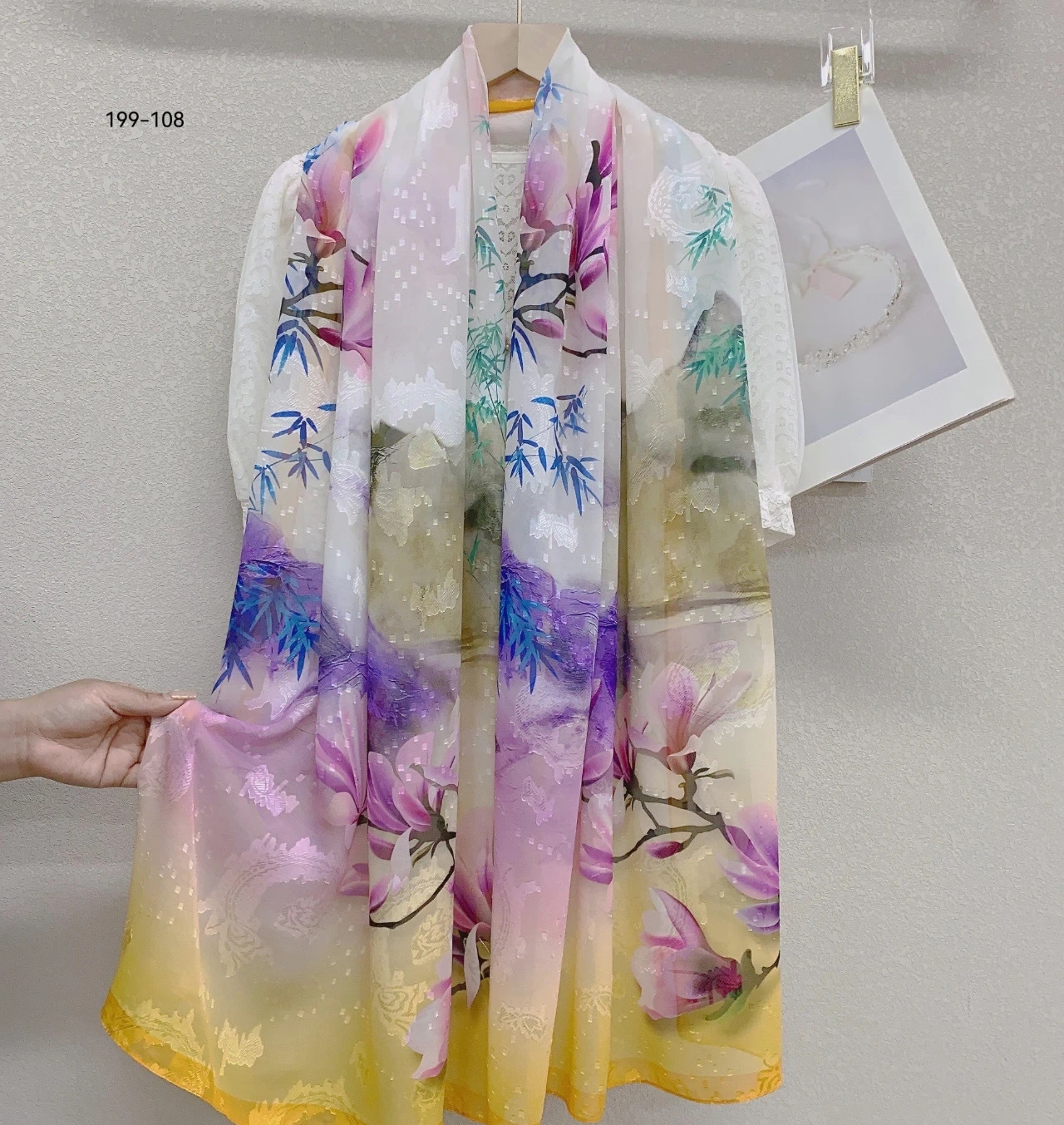 Guofeng 레트로 그린 실크 수제 목도리 컷 꽃 긴 스카프 여성의 여름 태양 보호 외부 착용 새로운 얇은 고급 실크 스카프스토어 가기