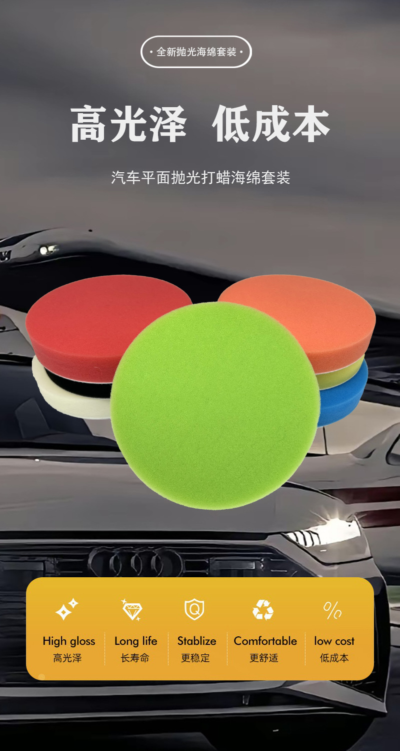 플랫 스펀지 연마 디스크 세트 풀 사이즈 자동차 뷰티 왁싱 유약 씰링 자체 접착 스폰지 패드 플랫 스폰지 디스크