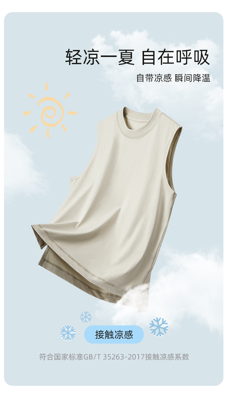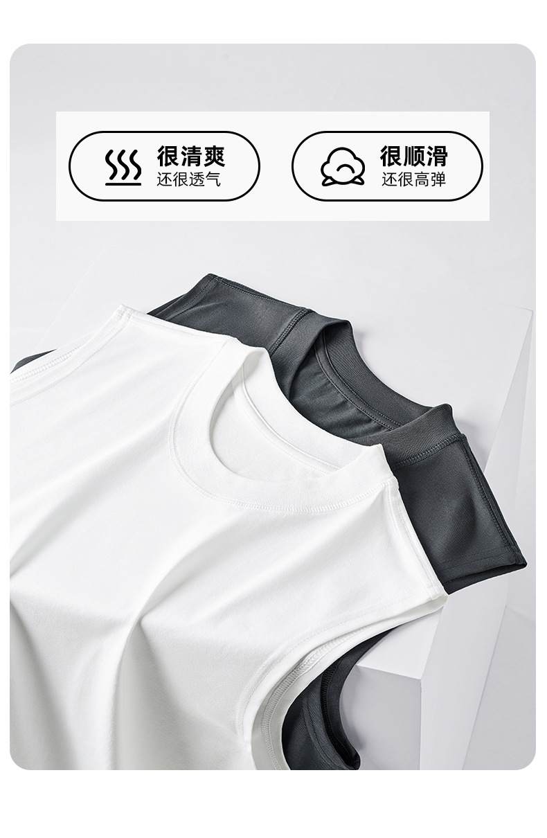 여름 230g 얼음면 단색 양복 조끼 소년 스포츠 피트니스 쿨 화이트 언더 셔츠 남성용 민소매 티셔츠