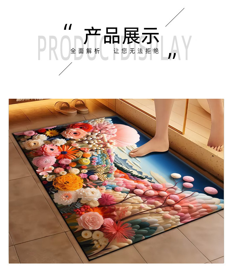 3d 시각적 3 차원 확장 부드러운 diatom 진흙 매트 욕실 문 미끄럼 방지 욕실 꽃 흡수 매트 도매스토어 가기