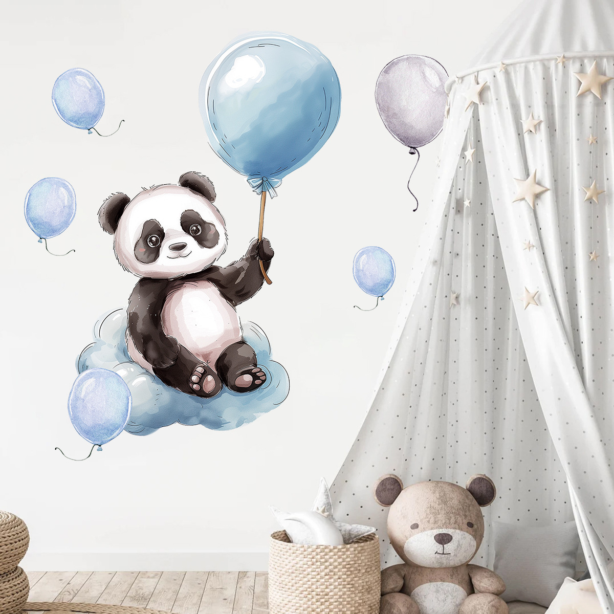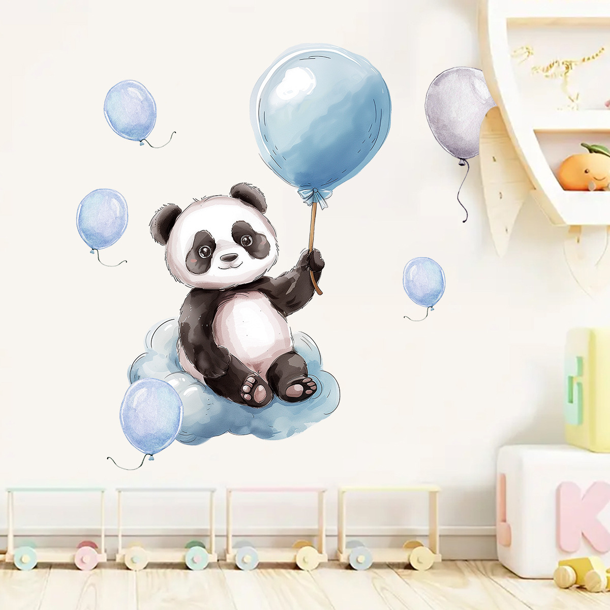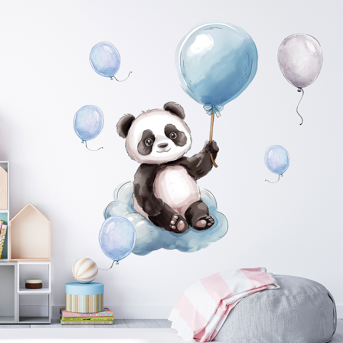 귀여운 팬더 셀프 접착 벽 스티커 만화 블루 풍선 구름 거실 어린이 방 장식 스티커 BR0274H