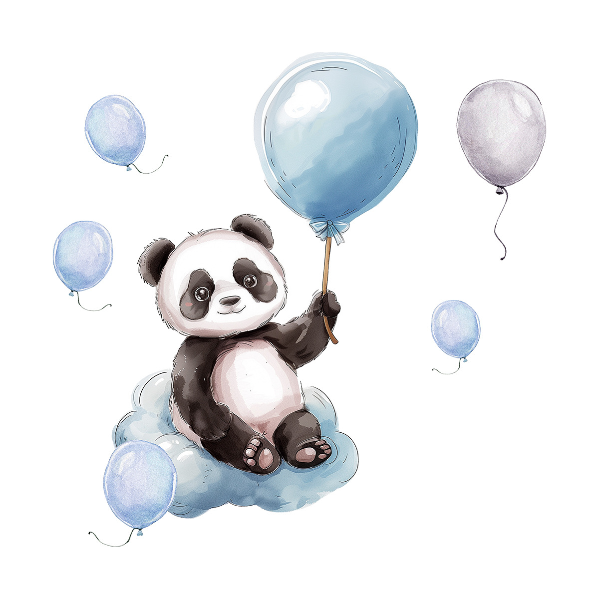 귀여운 팬더 셀프 접착 벽 스티커 만화 블루 풍선 구름 거실 어린이 방 장식 스티커 BR0274H스토어 가기