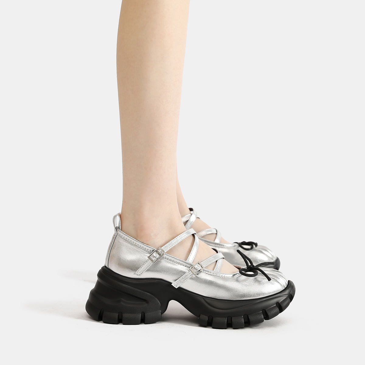 메리제인 여성화 2026년 신상 플랫폼 두꺼운 밑창 실버 발레 스타일 가죽 신발 봄 가을 싱글 슈즈 스포츠 아빠 신발스토어 가기